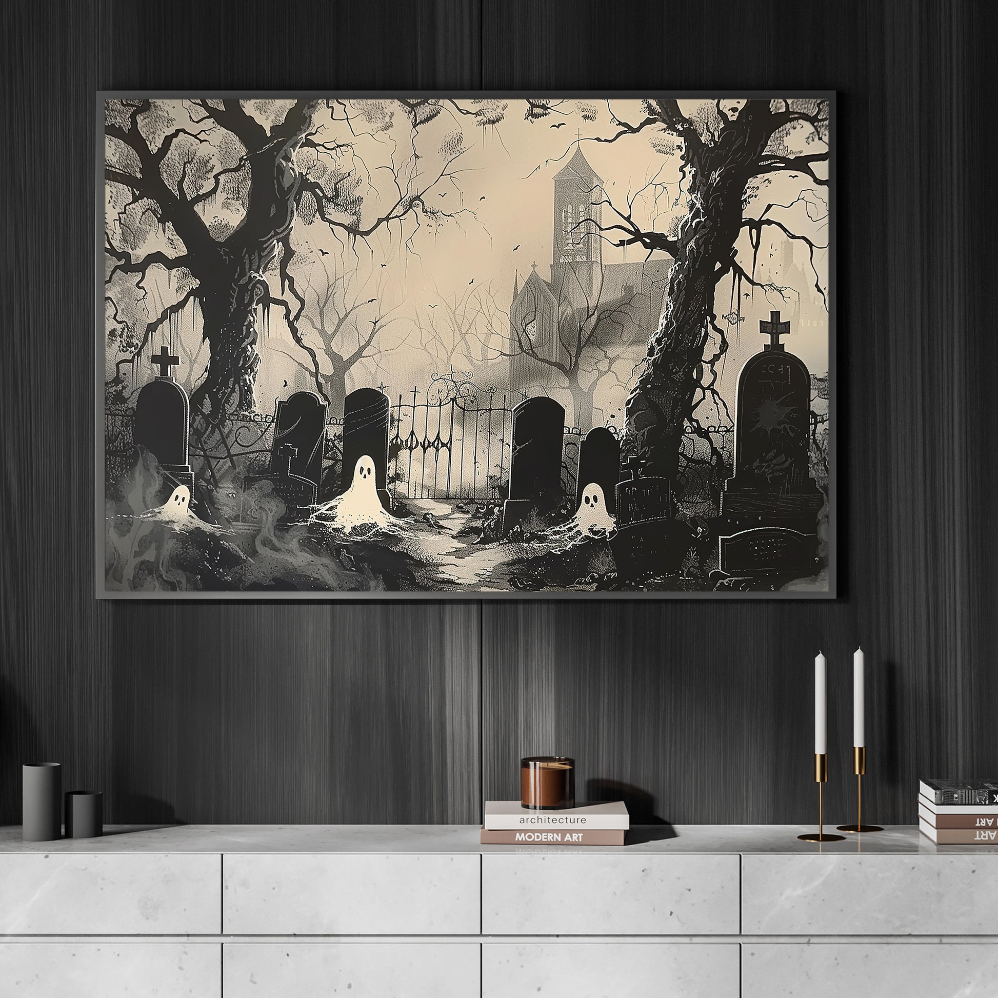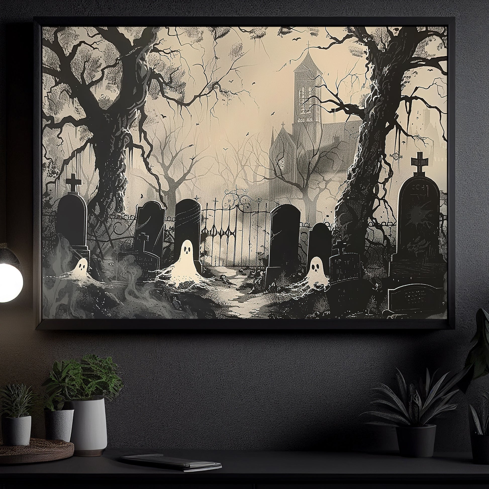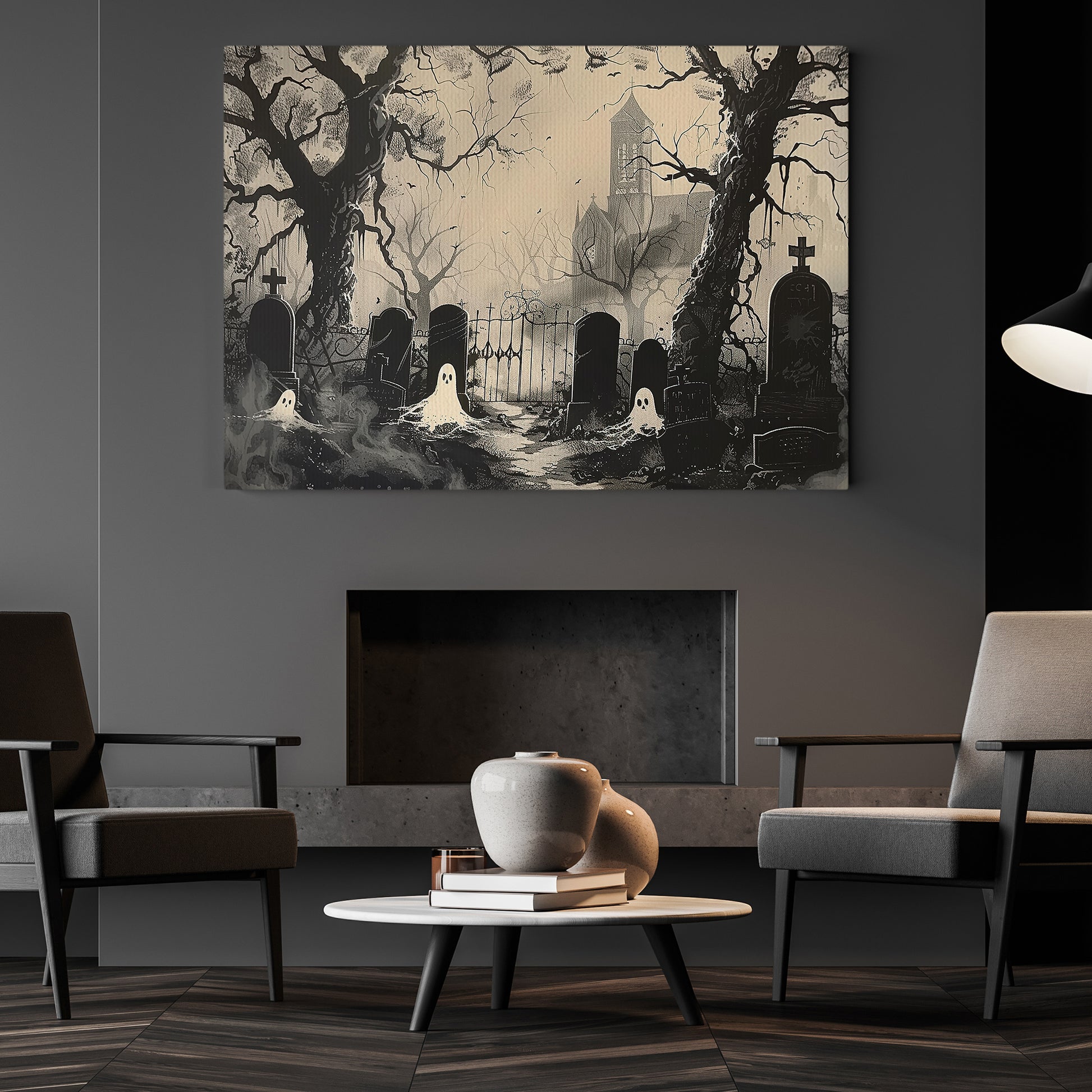 Haunting At Dusk, Ghost Canvas Painting, Spooky Season Wall Art Decor, Halloween Poster Gift For Ghost Lovers