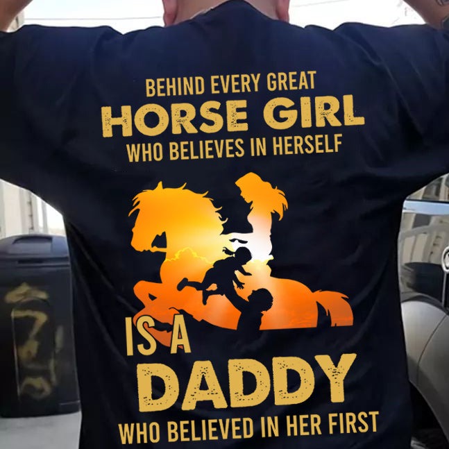Back Printed Father's Day Horse T-shirt, Behind Every Horse Girl Who Believes In Herself Is A Daddy, Gift For Horse Lovers, Horse Dad Tees, Horse Shirt