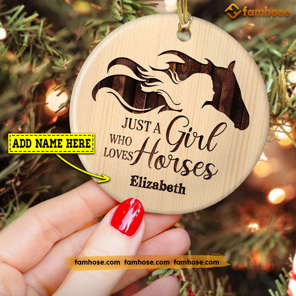 Christmas Horse Ornament, Just A Girl Who Loves Horses Gift For Horse Lovers, Personalized Custom Circle Ceramic Ornament