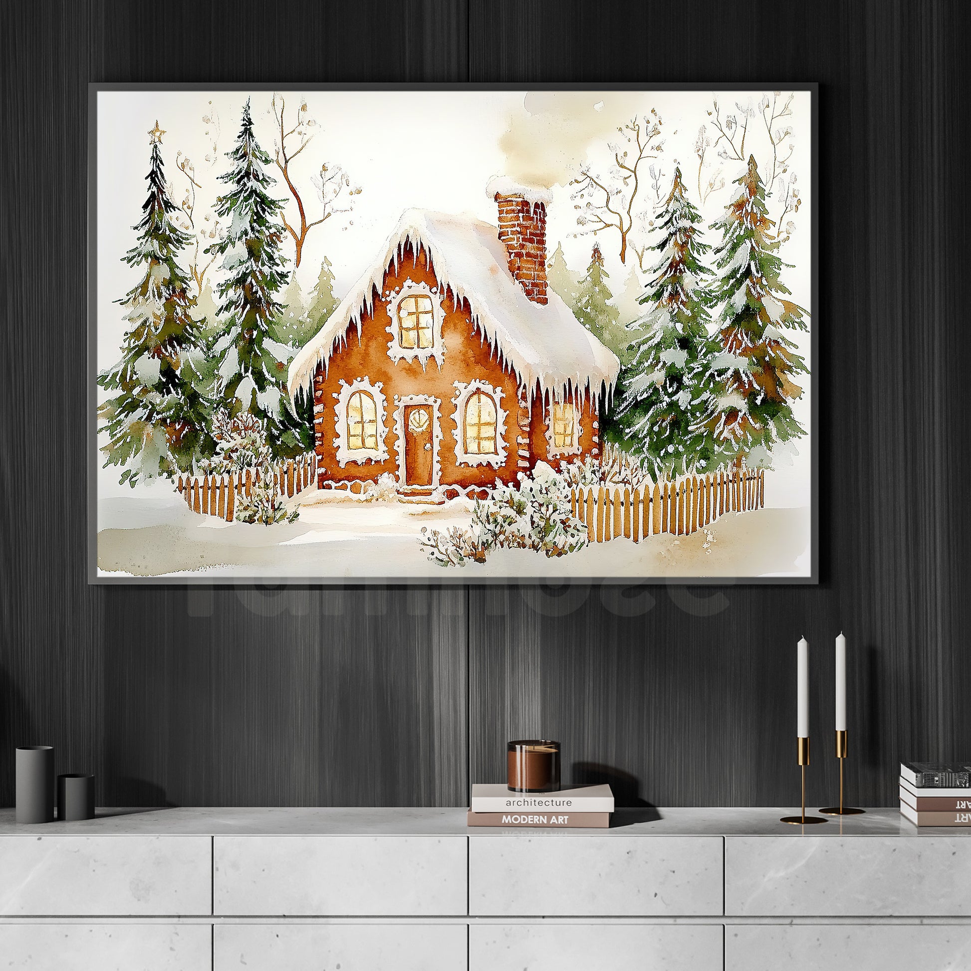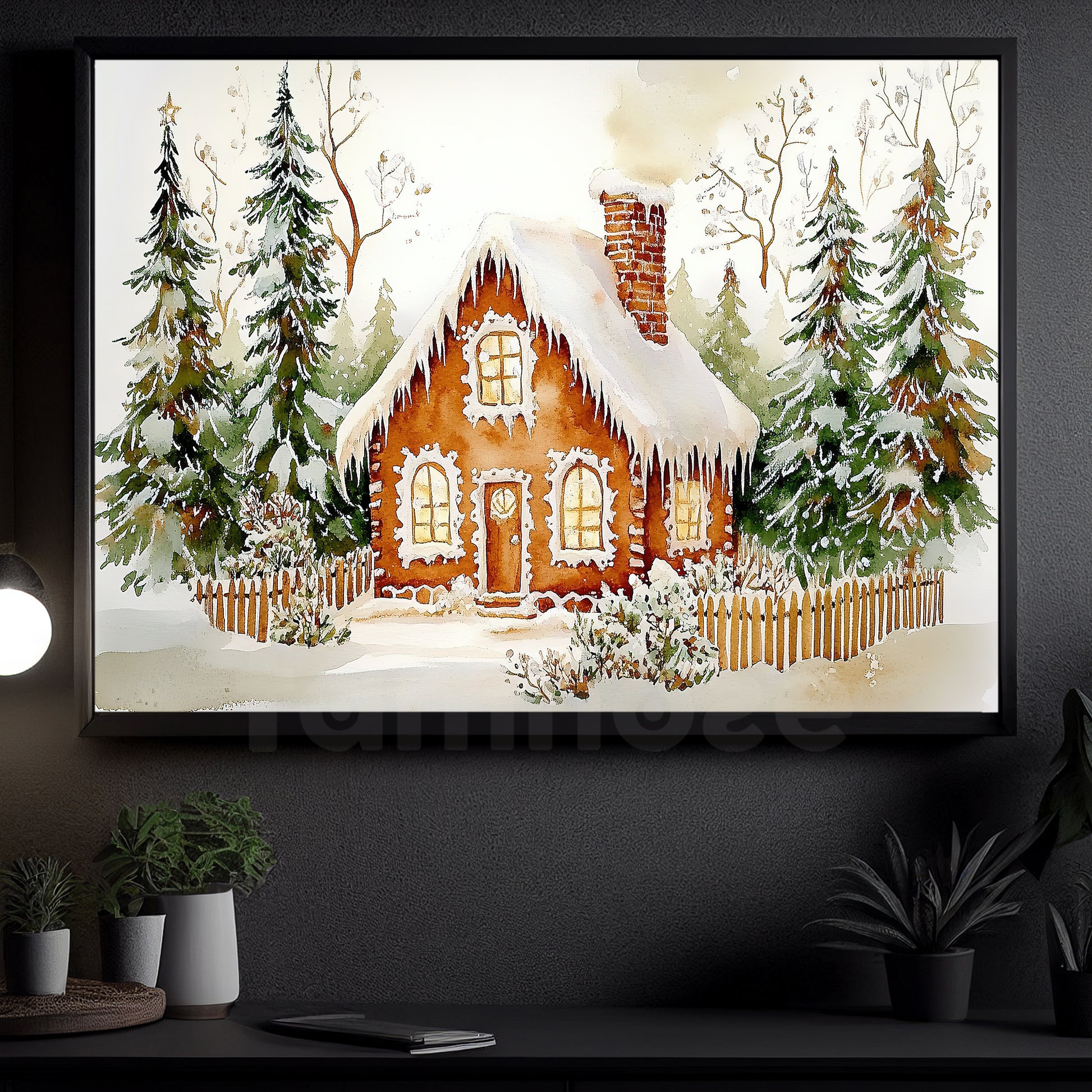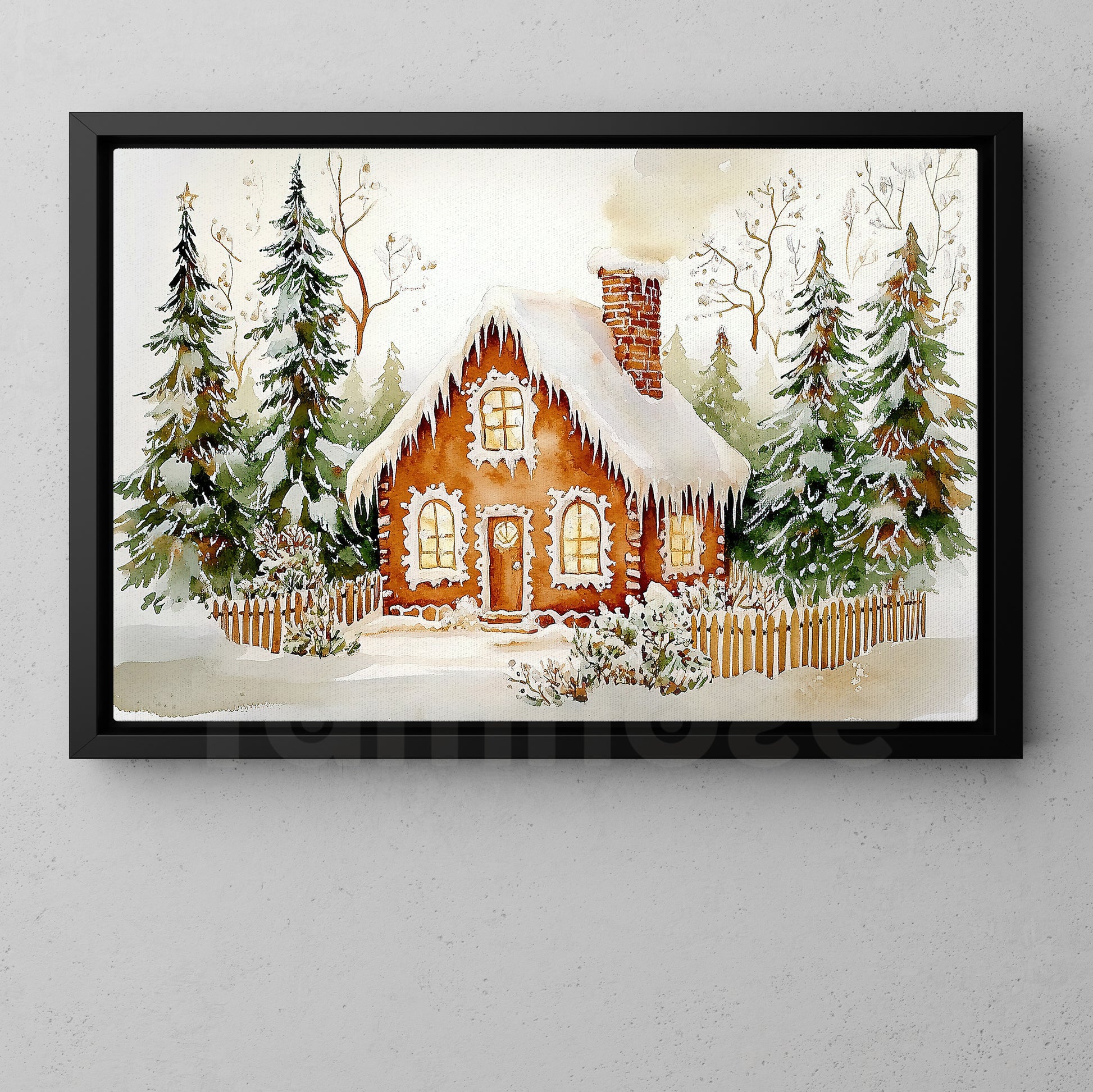 Interesting Christmas Canvas Painting, Warming House In Snow Wall Art Decor, Xmas Poster Gift