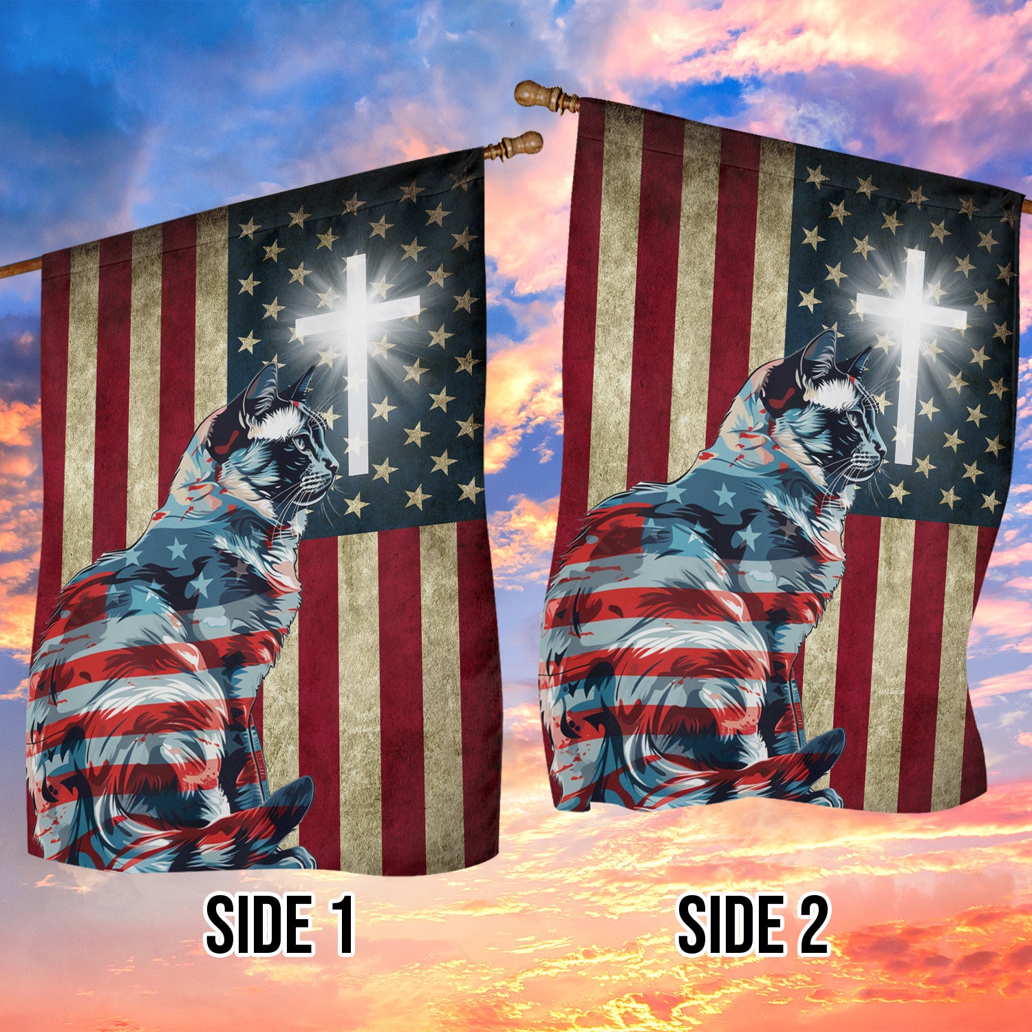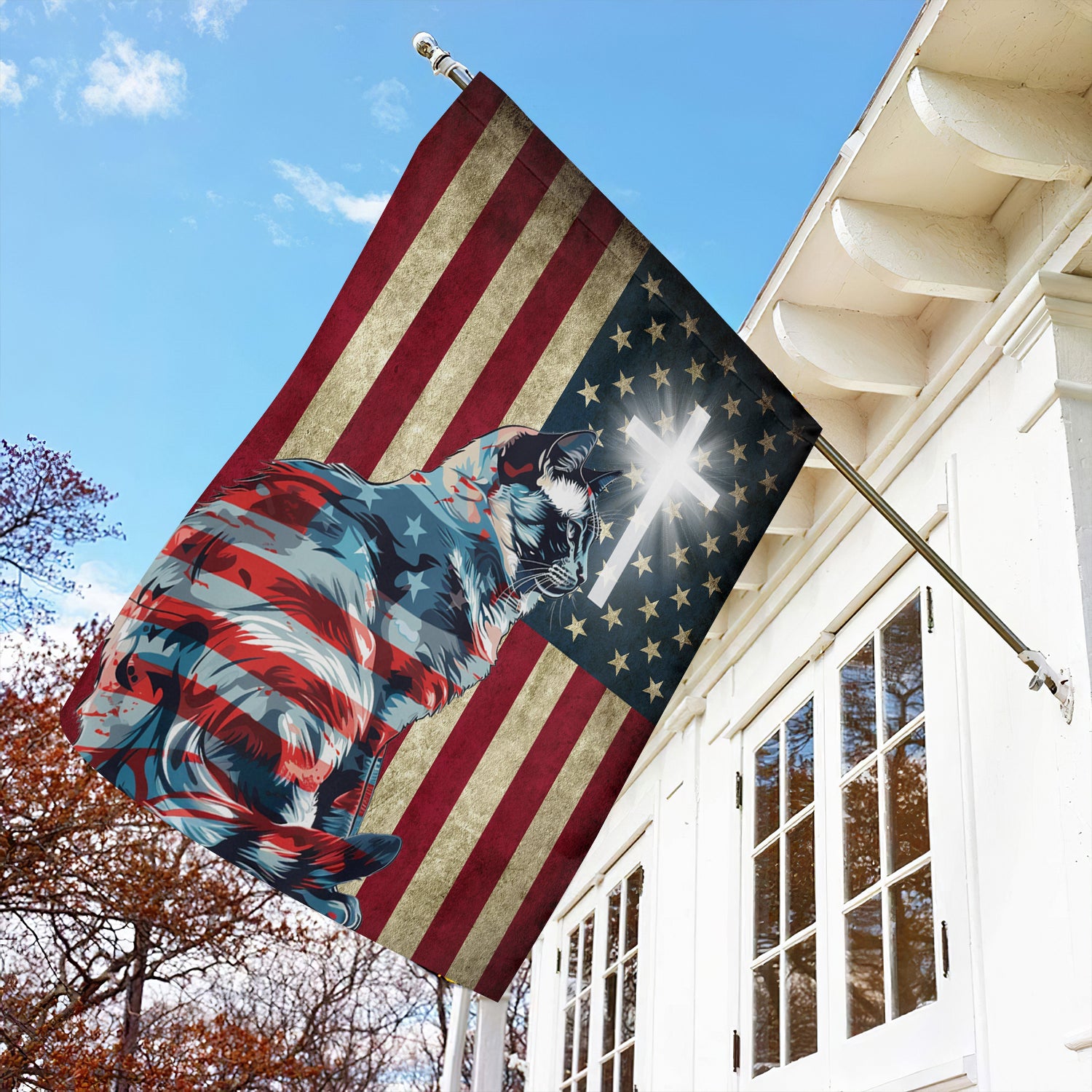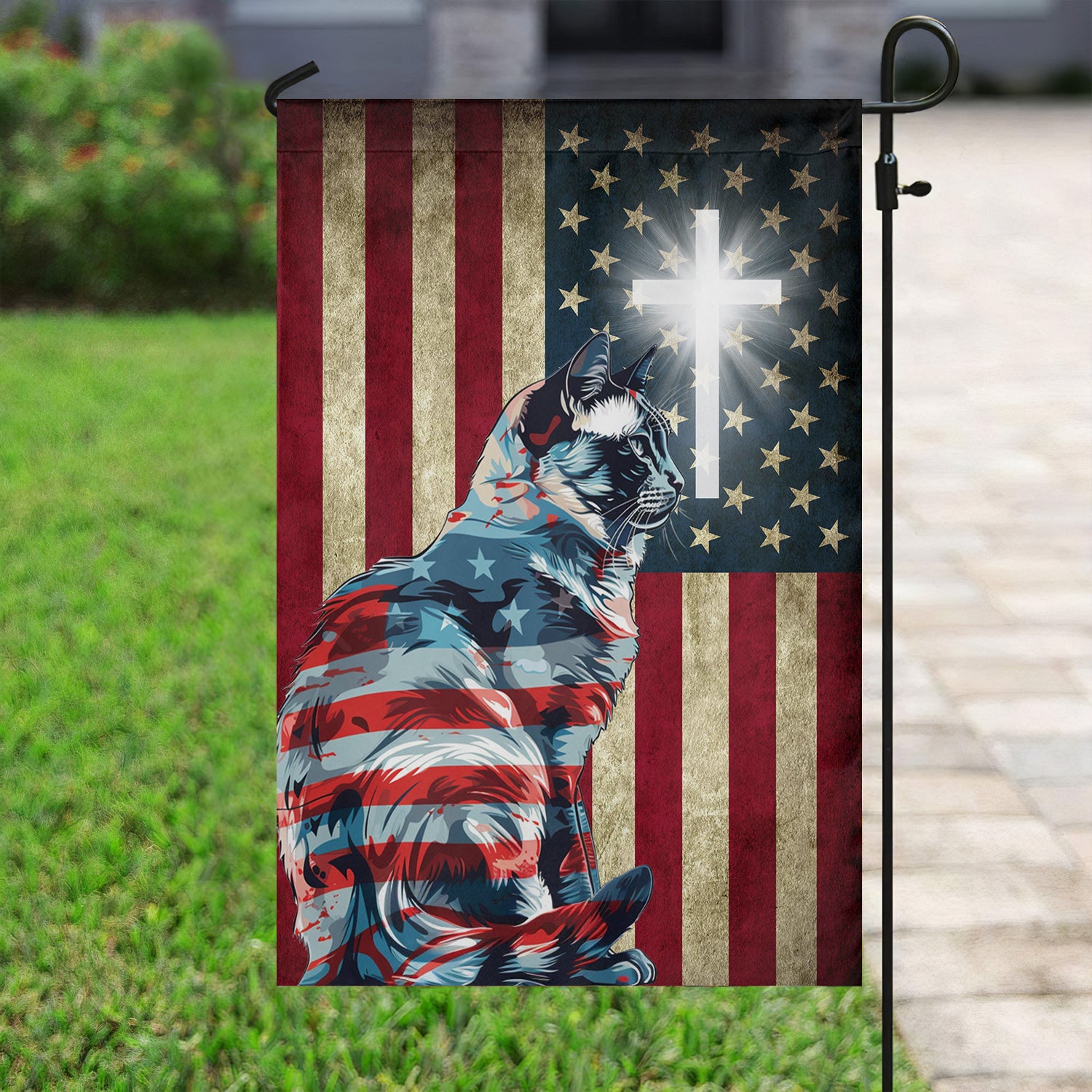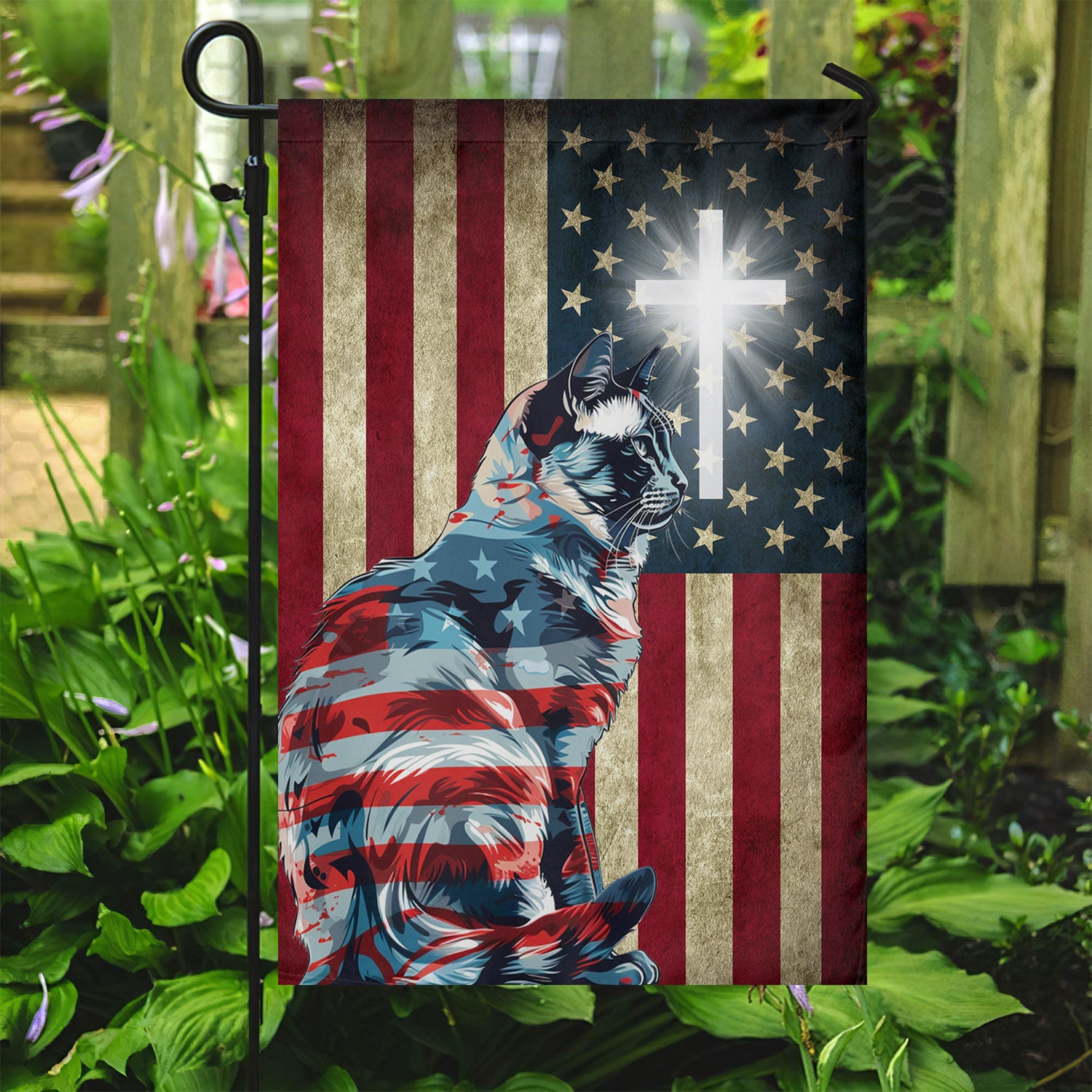 July 4th Cat Garden Flag - House Flag, Believe In Jesus, Independence Day Yard Flag Gift For Cat Lovers
