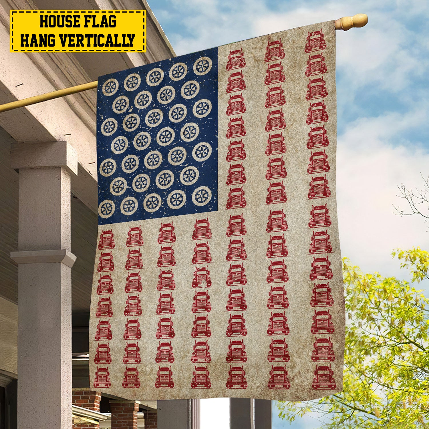 July 4th Trucker American Garden Flag House Flag, Independence Day Patriotic Trucker USA Yard Flag Gift For Trucker Lovers