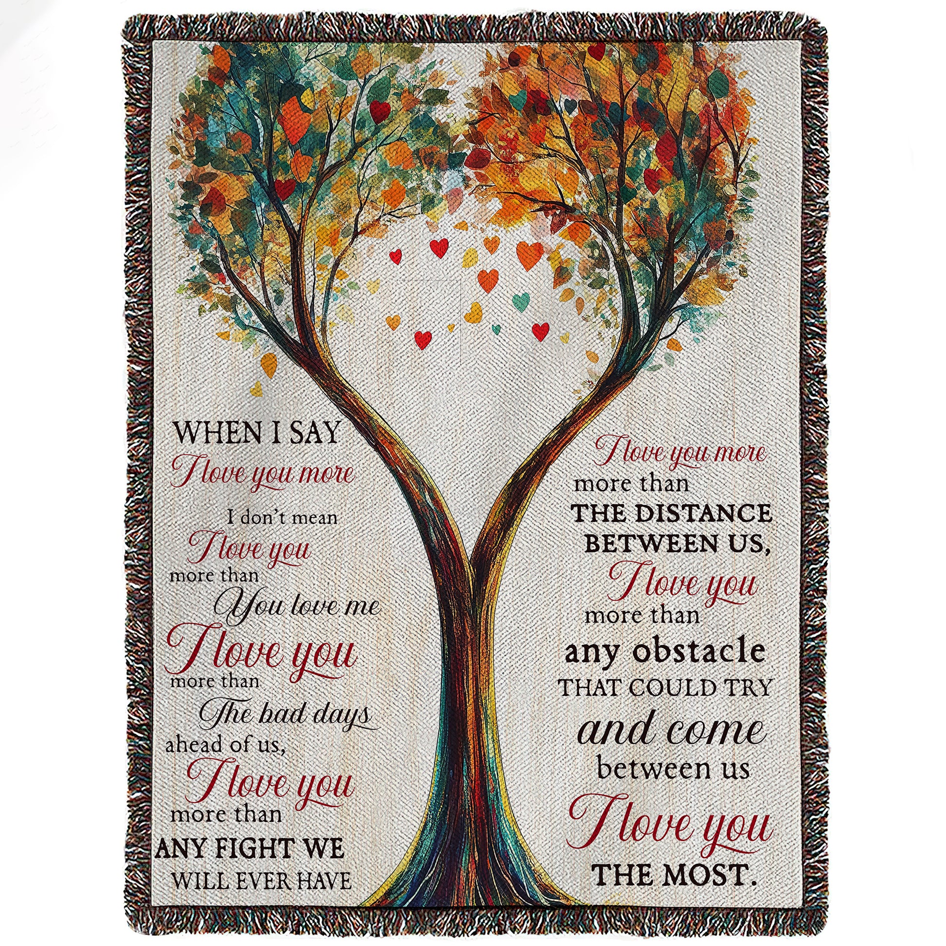 Love You More Blanket, Heartwarming Tree Design, Romantic Quotes Throw Blanket, Gift for Loved Ones