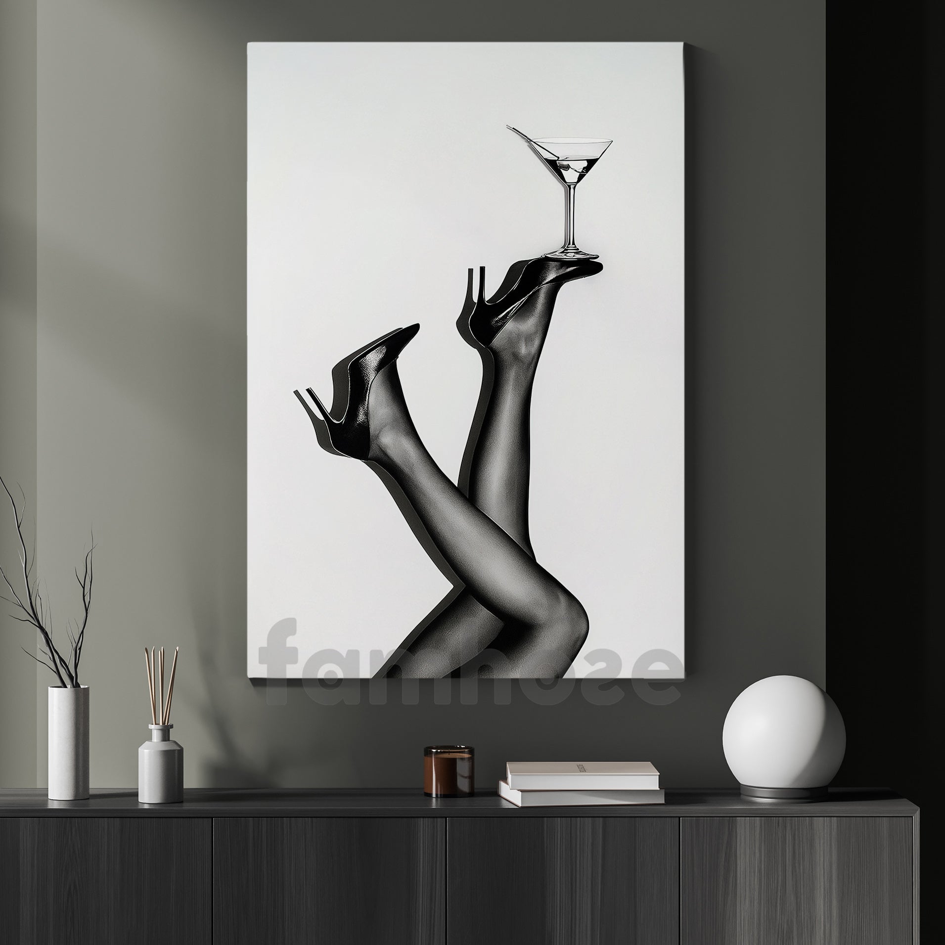 Martini Heels Canvas Painting, Glam Fashion Wall Art Decor, Poster Gift For Heels Lovers