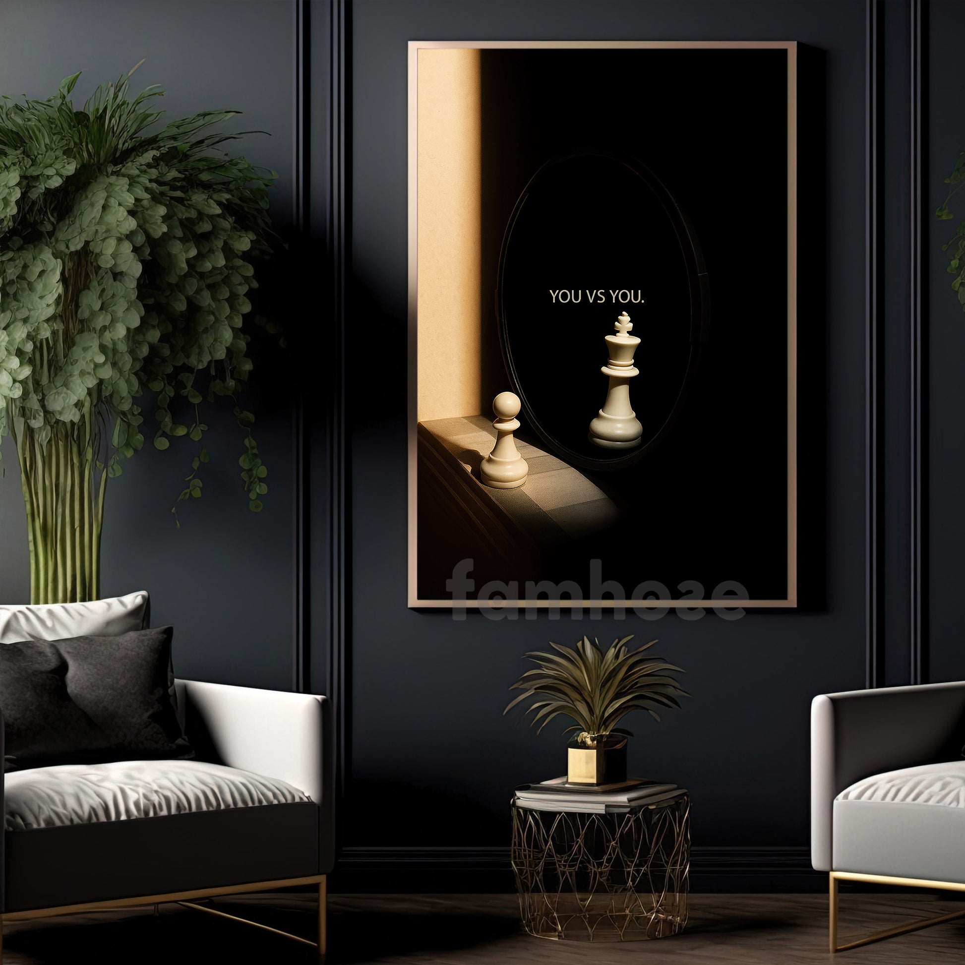 Minimalist Chess Canvas Painting, You Vs You Self Improvement Wall Art Decor, Poster Gift To Decor House Or Office