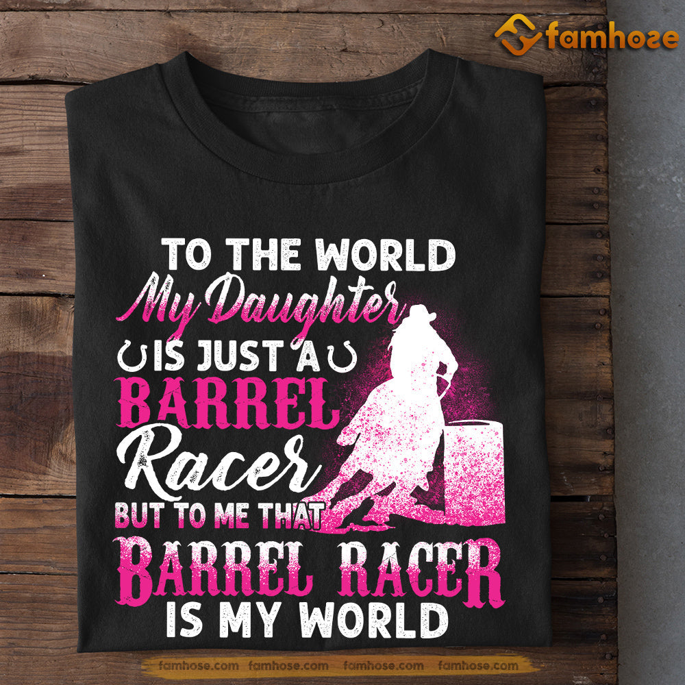 Mother's Day Barrel Racing T-shirt, To The World My Daughter Is Just A Barrel Racer But To Me Is My World, Gift For Barrel Racing Lovers, Horse Riders, Equestrians