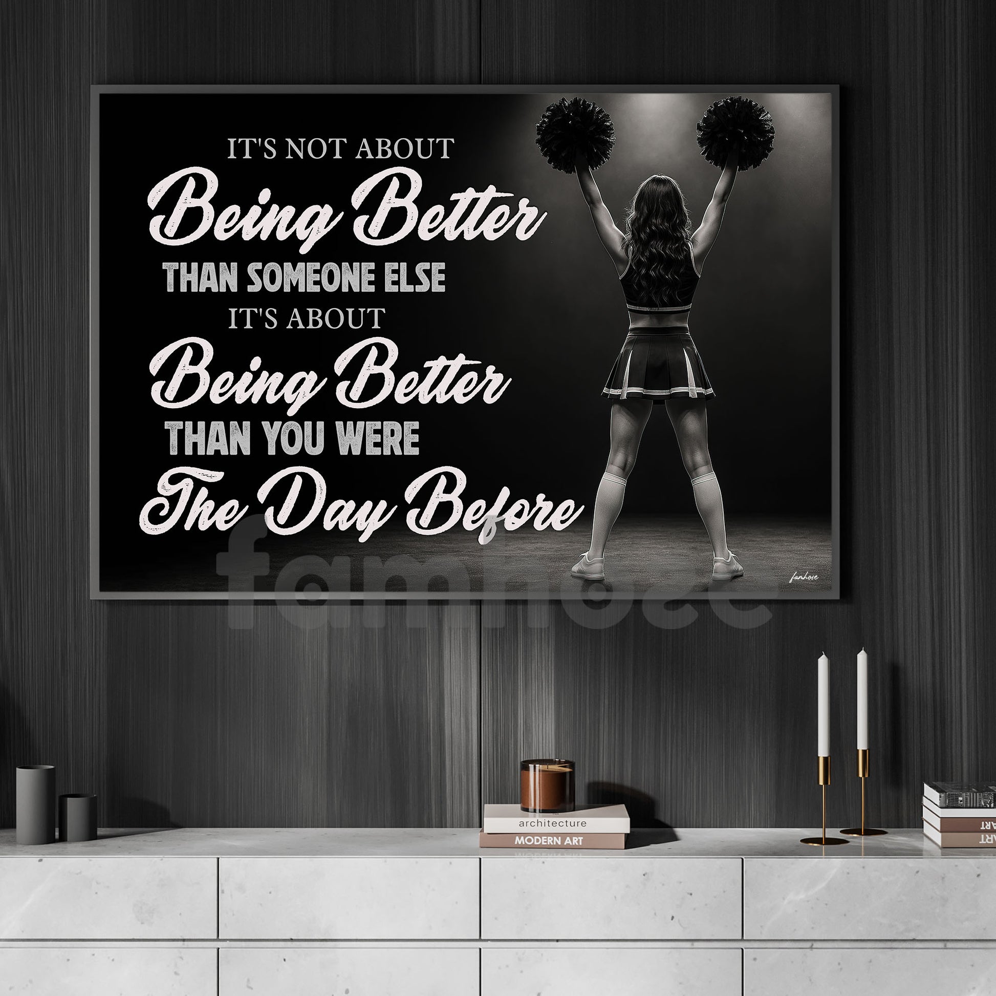 Motivational Cheerleading Girl Canvas Painting, It's About Being Better Wall Art Decor, Poster Gift For Cheerleading Lovers