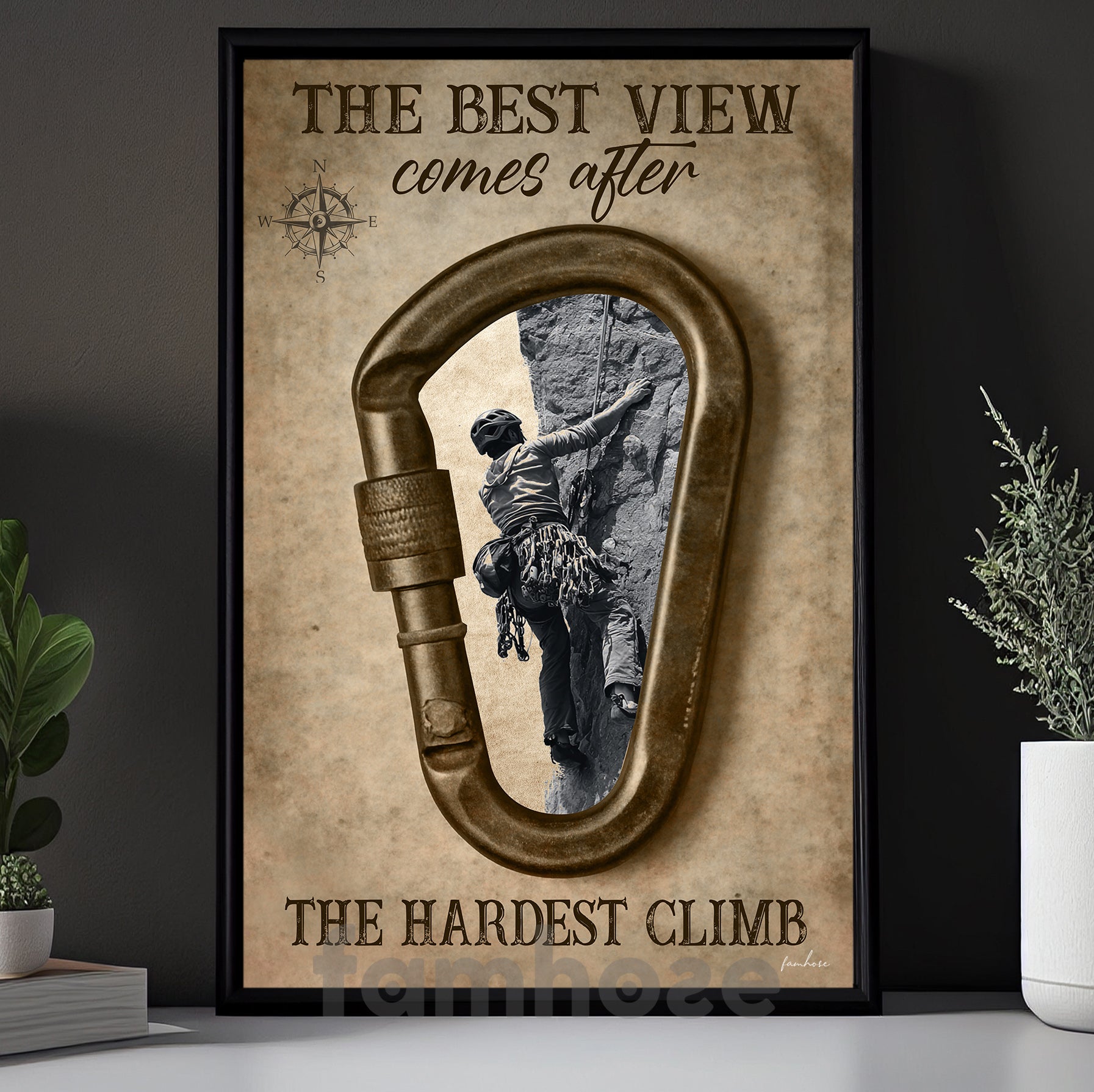 Motivational Climbing Canvas Painting, The Best View Sport Wall Art Decor, Poster Gift For Climbing Lovers