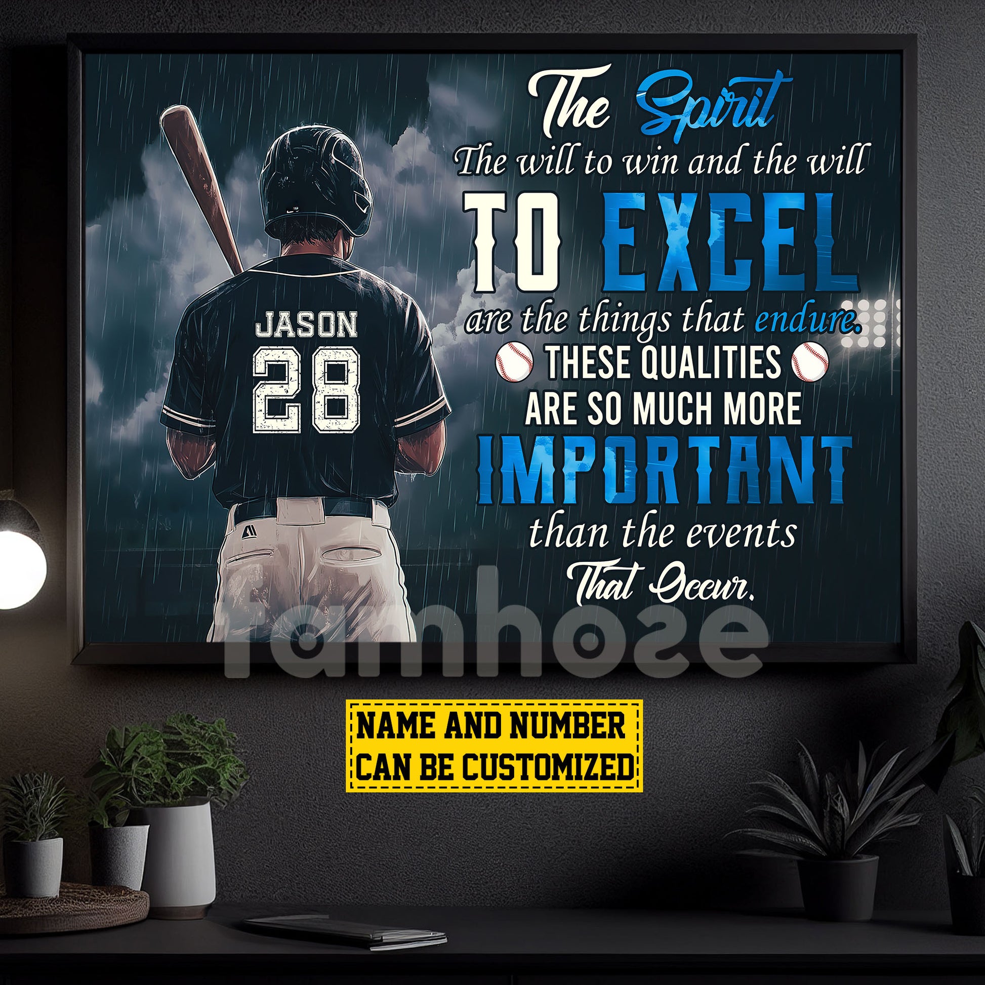 Motivational Personalized Baseball Boy Canvas Painting, The Spirit The Will To Win Sport Wall Art Decor, Poster Gift For Baseball Lovers