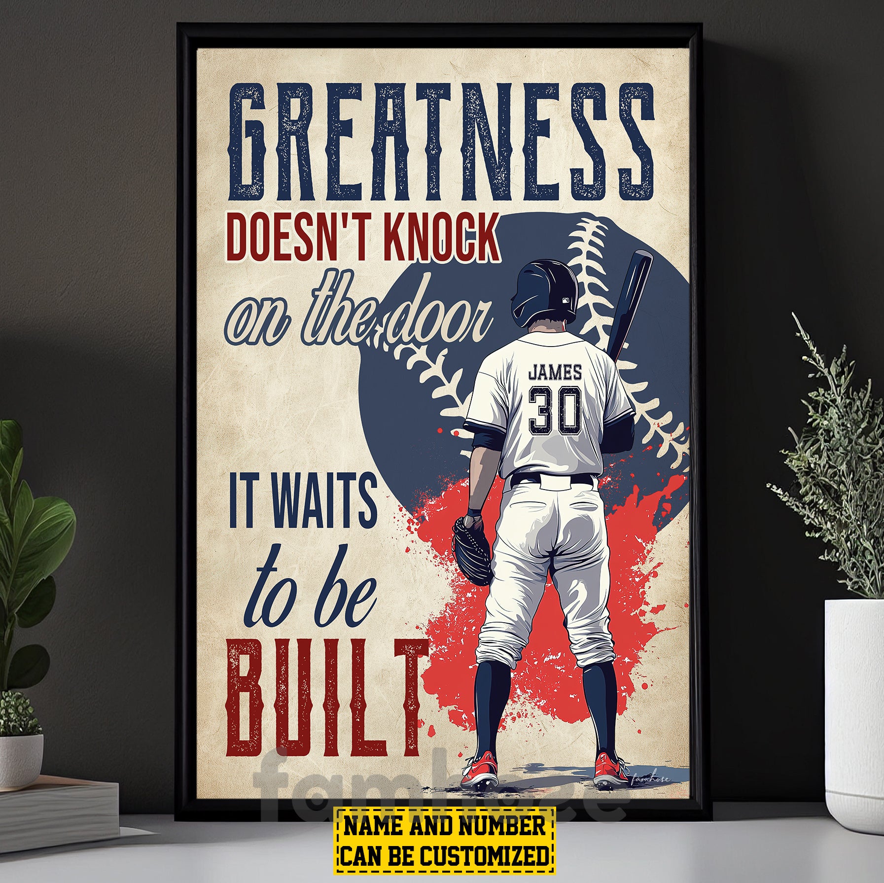 Motivational Personalized Baseball Man Canvas Painting, Greatness Doesn't Knock On The Door Sport Wall Art Decor, Poster Gift For Baseball Lovers