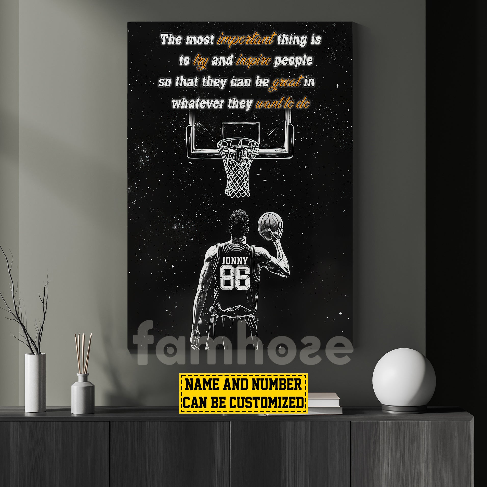 Motivational Personalized Basketball Boy Canvas Painting, The Most Important Thing Sport Wall Art Decor, Poster Gift For Basketball Lovers