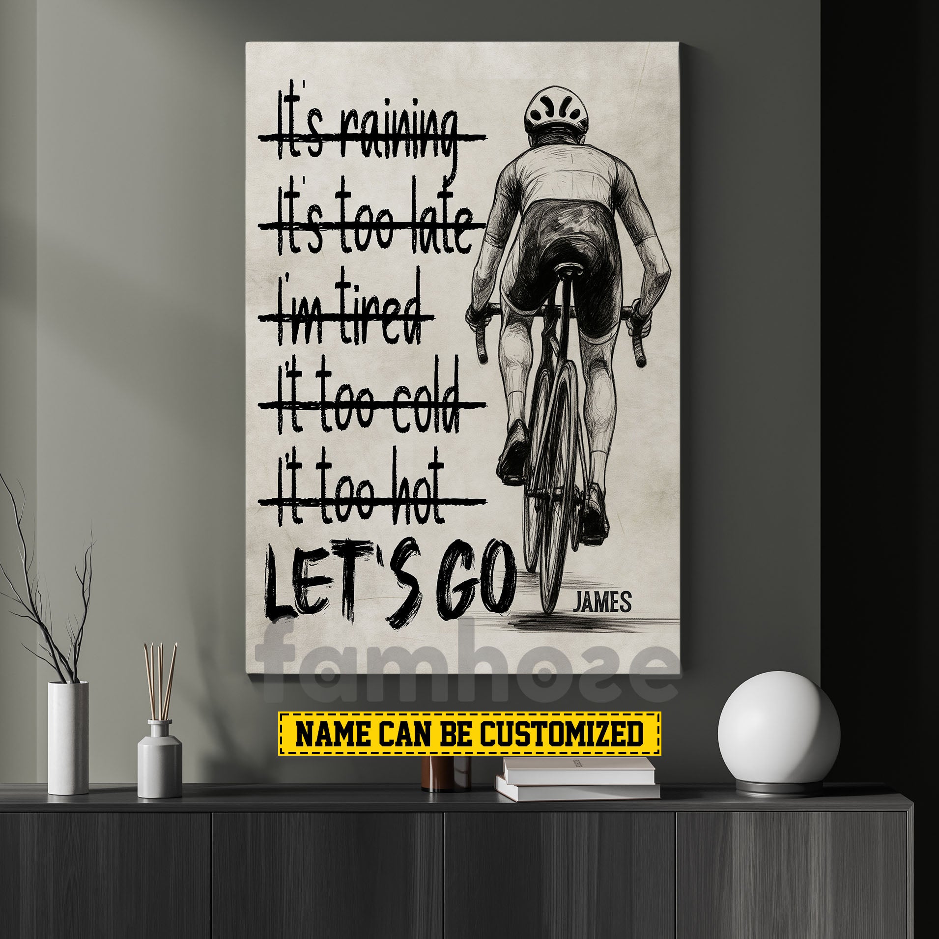 Motivational Personalized Cycling Man Canvas Painting, Let's Go Sport Wall Art Decor, Poster Gift For Cycling Lovers