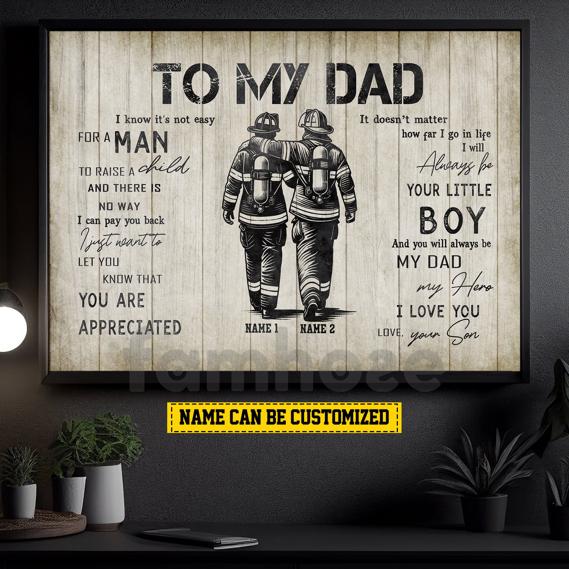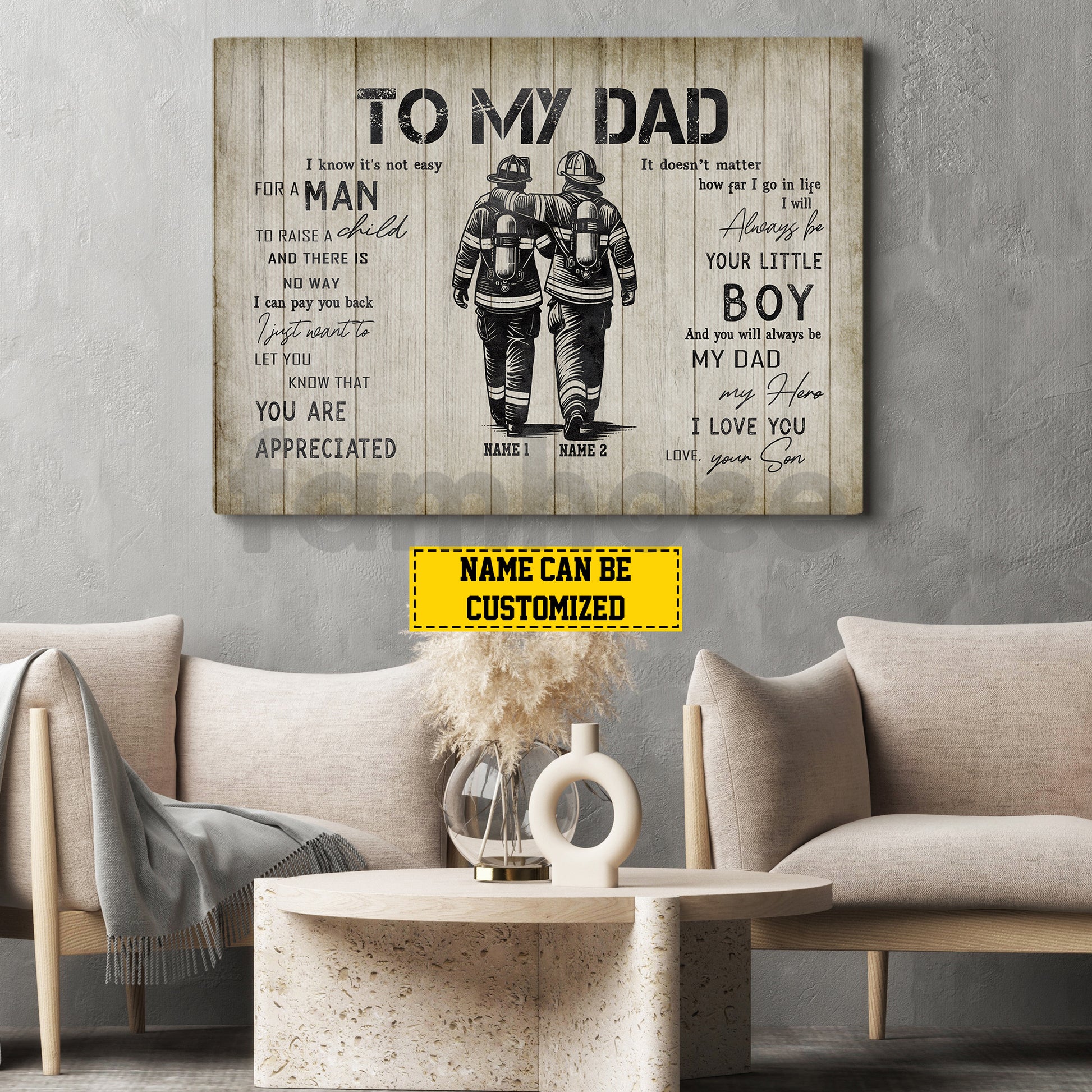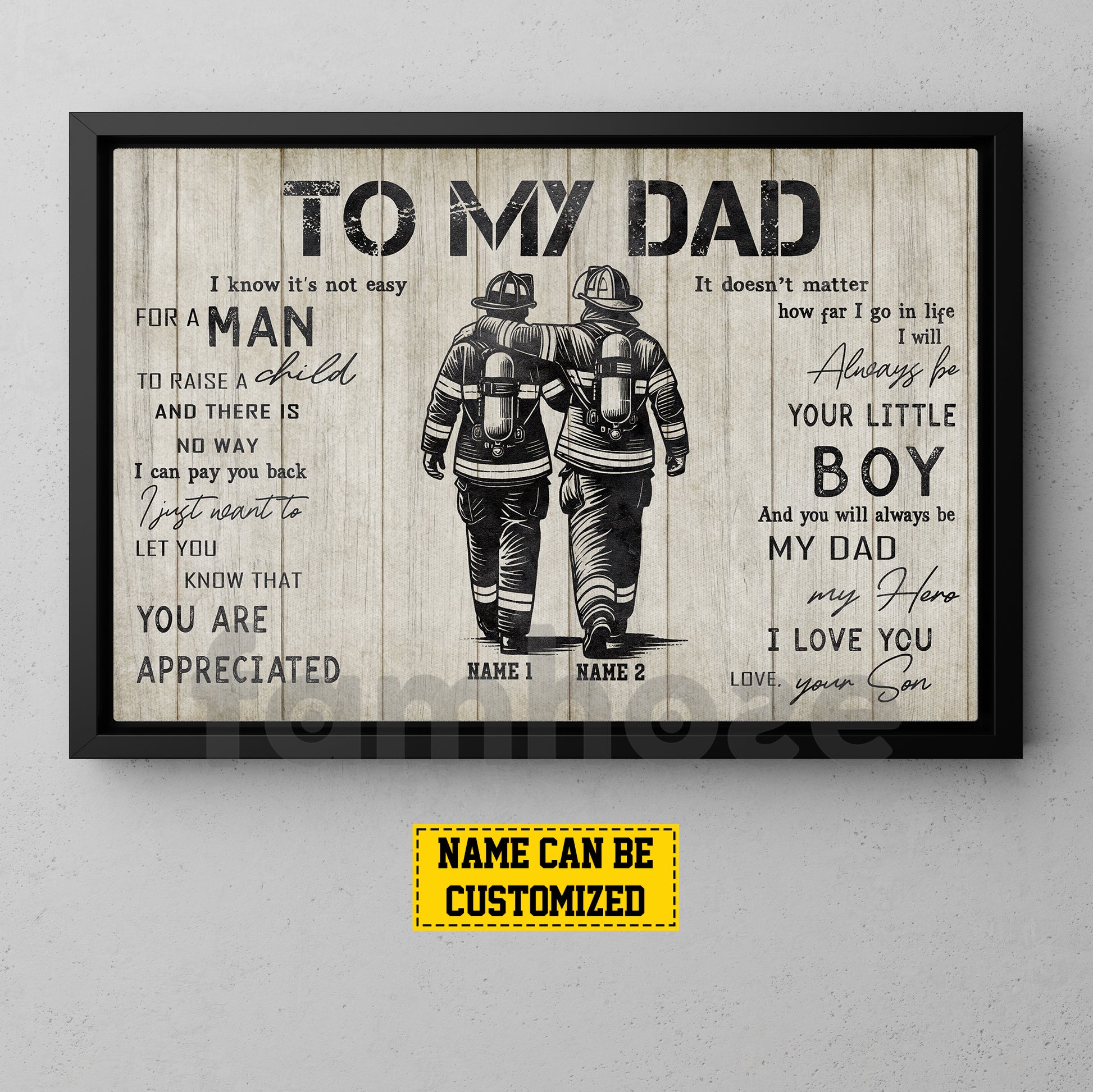 Motivational Personalized Firefighter Dad Son Canvas Painting, To My Dad I Know It's Not Easy Wall Art Decor, Poster Father's Day Gift For Fireman, Firefighter Lovers