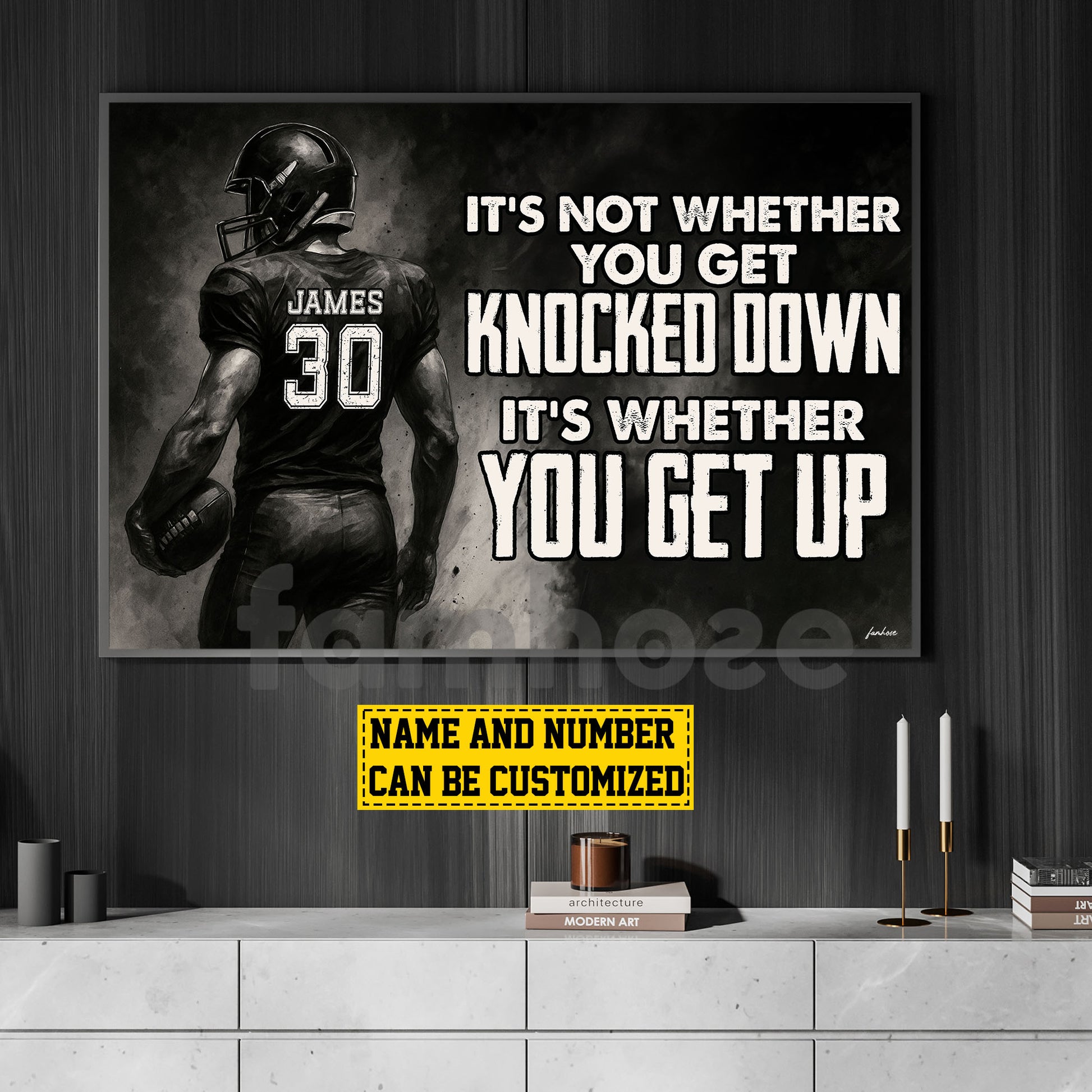Motivational Personalized Football Man Canvas Painting, It's Not Whether You Get Knocked Down Sport Wall Art Decor, Poster Gift For Football Lovers