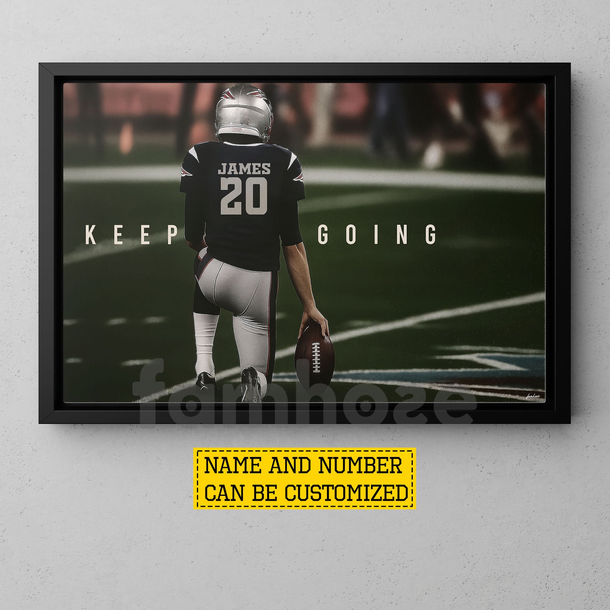 Motivational Personalized Football Man Canvas Painting, Keep Going Sport Wall Art Decor, Poster Gift For Football Lovers