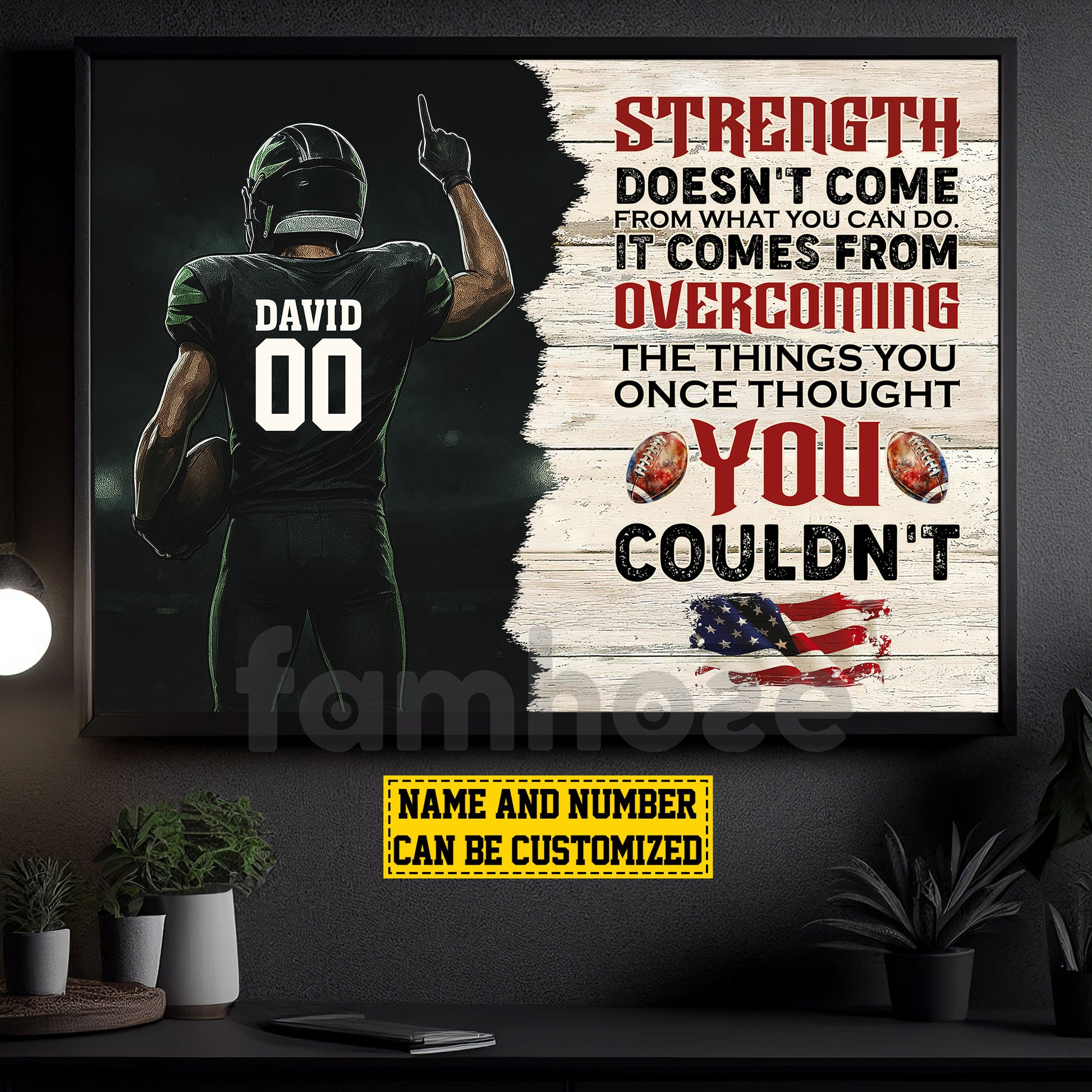 Motivational Personalized Football Man Canvas Painting, Strength Doesn't Come From What You Can Do Sport Wall Art Decor, Poster Gift For Football Lovers