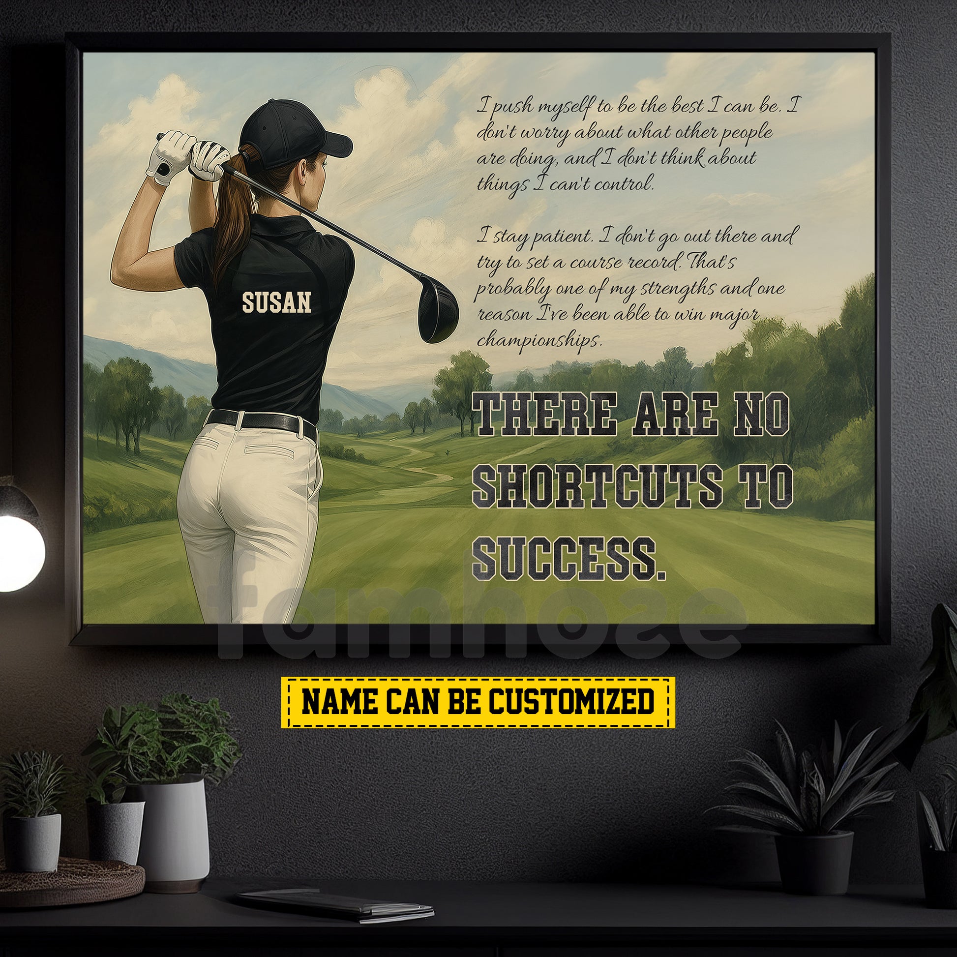 Motivational Personalized Golf Woman Canvas Painting, There Are No Shortcuts To Success Sport Wall Art Decor, Poster Gift For Golf Lovers