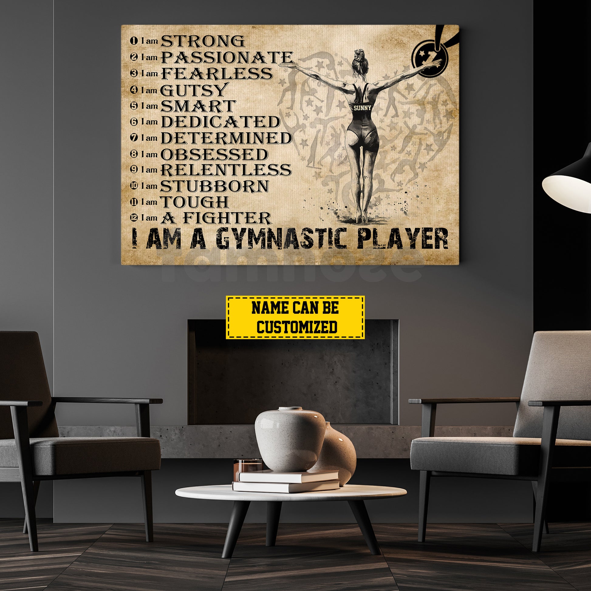 Motivational Personalized Gymnastic Girl Canvas Painting, I Am A Gymnastic Player Wall Art Decor, Poster Gift For Gymnastics Lovers