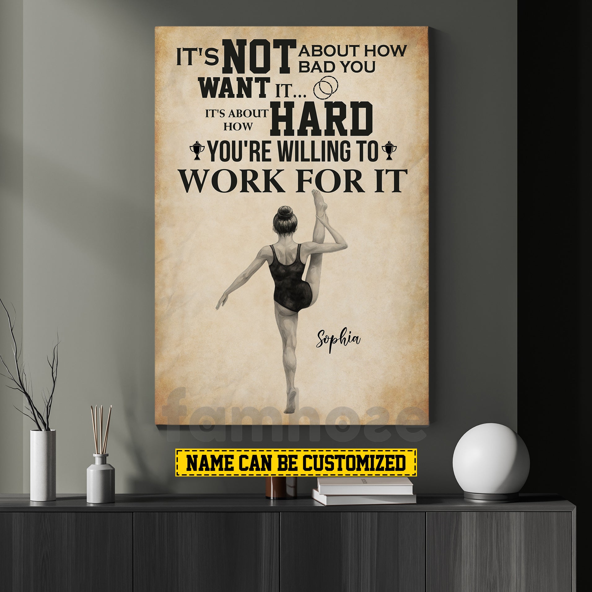 Motivational Personalized Gymnastic Girl Canvas Painting, It's Not About How Bad You Want It Wall Art Decor, Poster Gift For Gymnastic Lovers