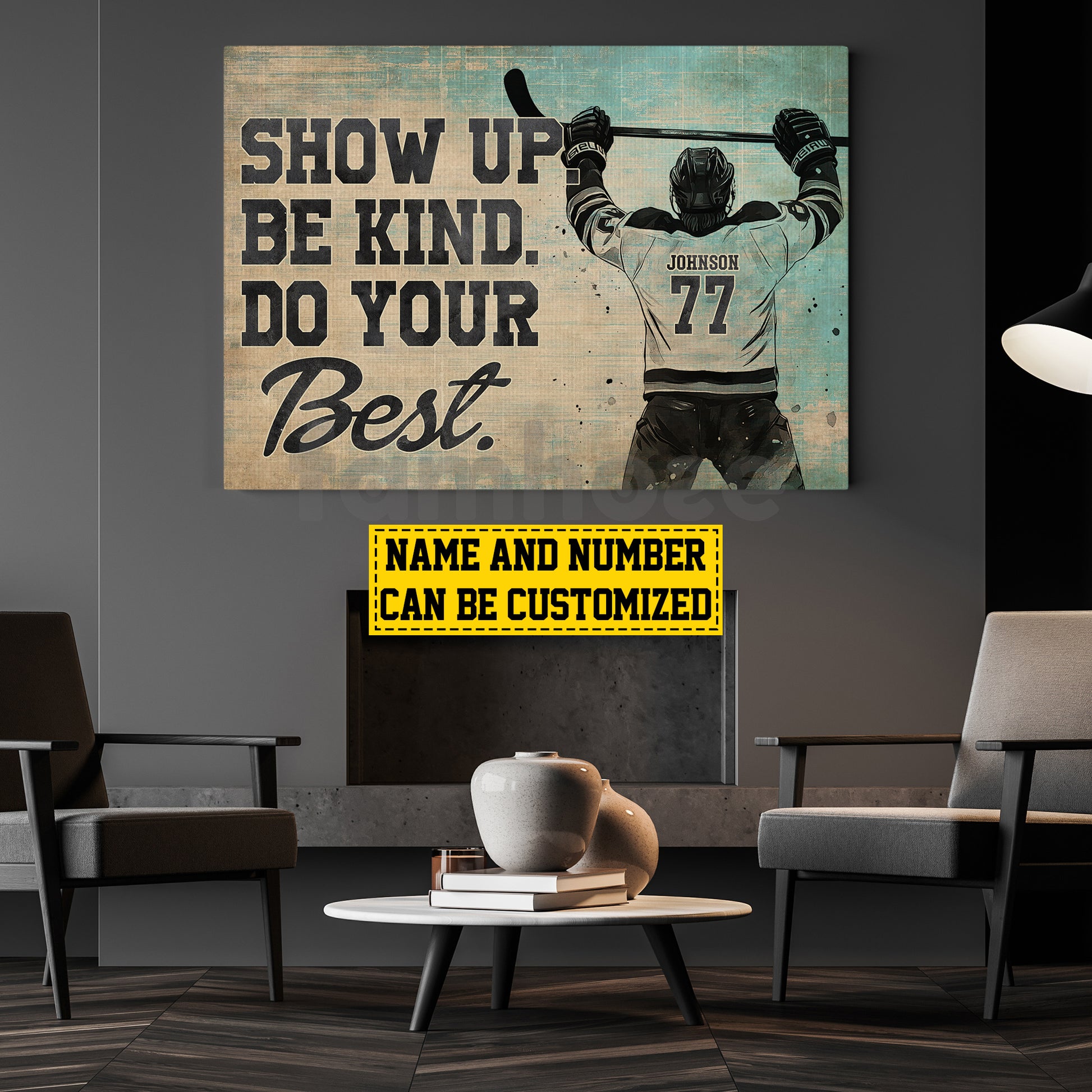 Motivational Personalized Hockey Girl Canvas Painting, Show Up Be Kind Sport Wall Art Decor, Poster Gift For Hockey Lovers