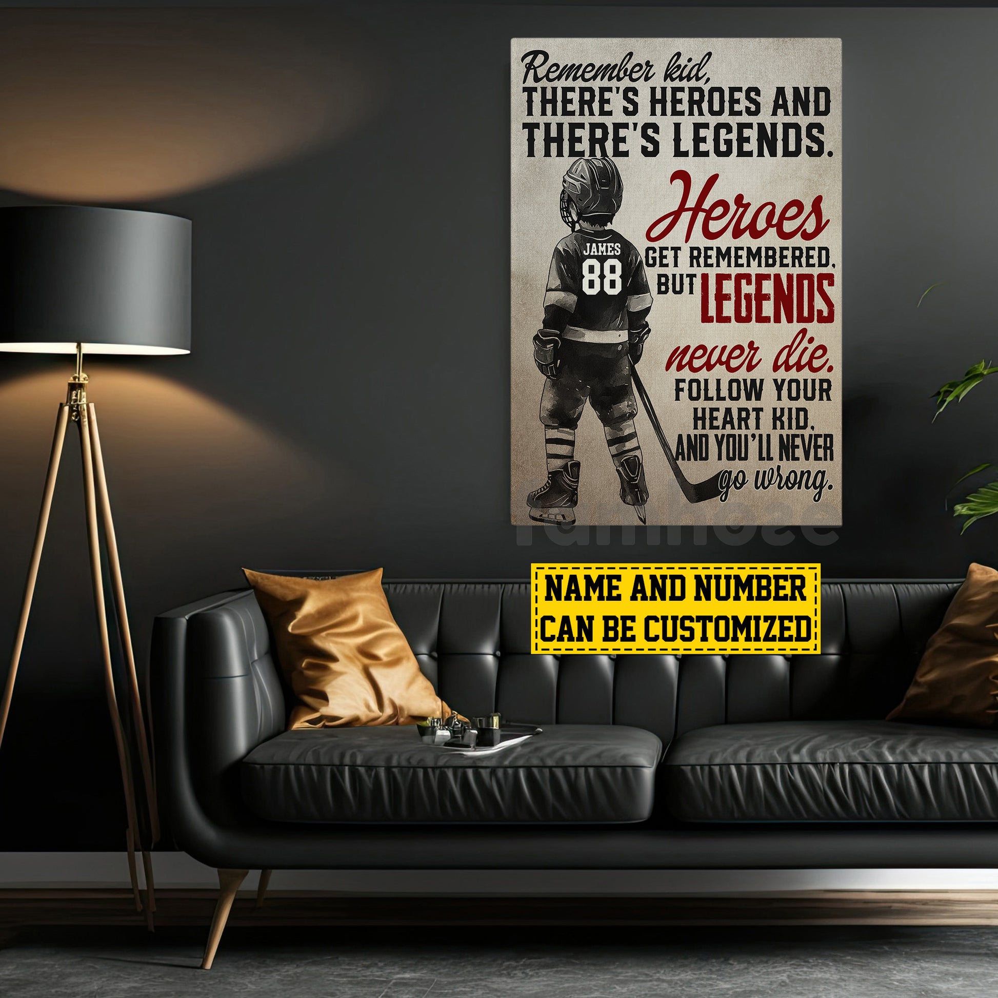 Motivational Personalized Hockey Kid Boy Canvas Painting, Remember Kid Sport Wall Art Decor, Poster Gift For Hockey Lovers