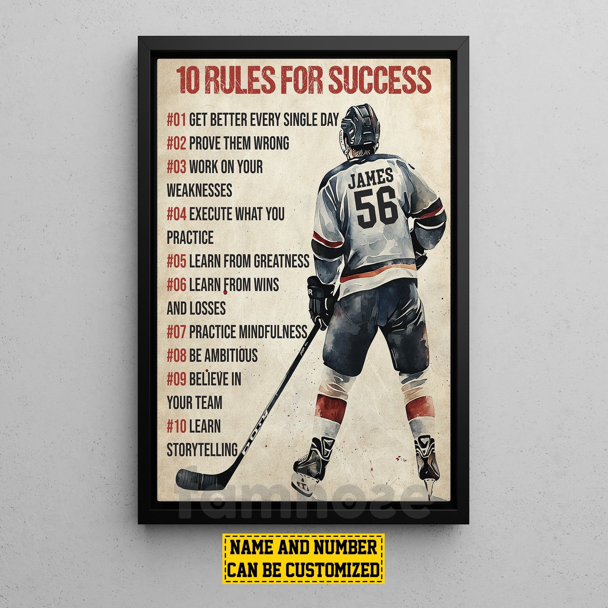 Motivational Personalized Hockey Man Canvas Painting, 10 Rules For Success Sport Wall Art Decor, Poster Gift For Hockey Lovers