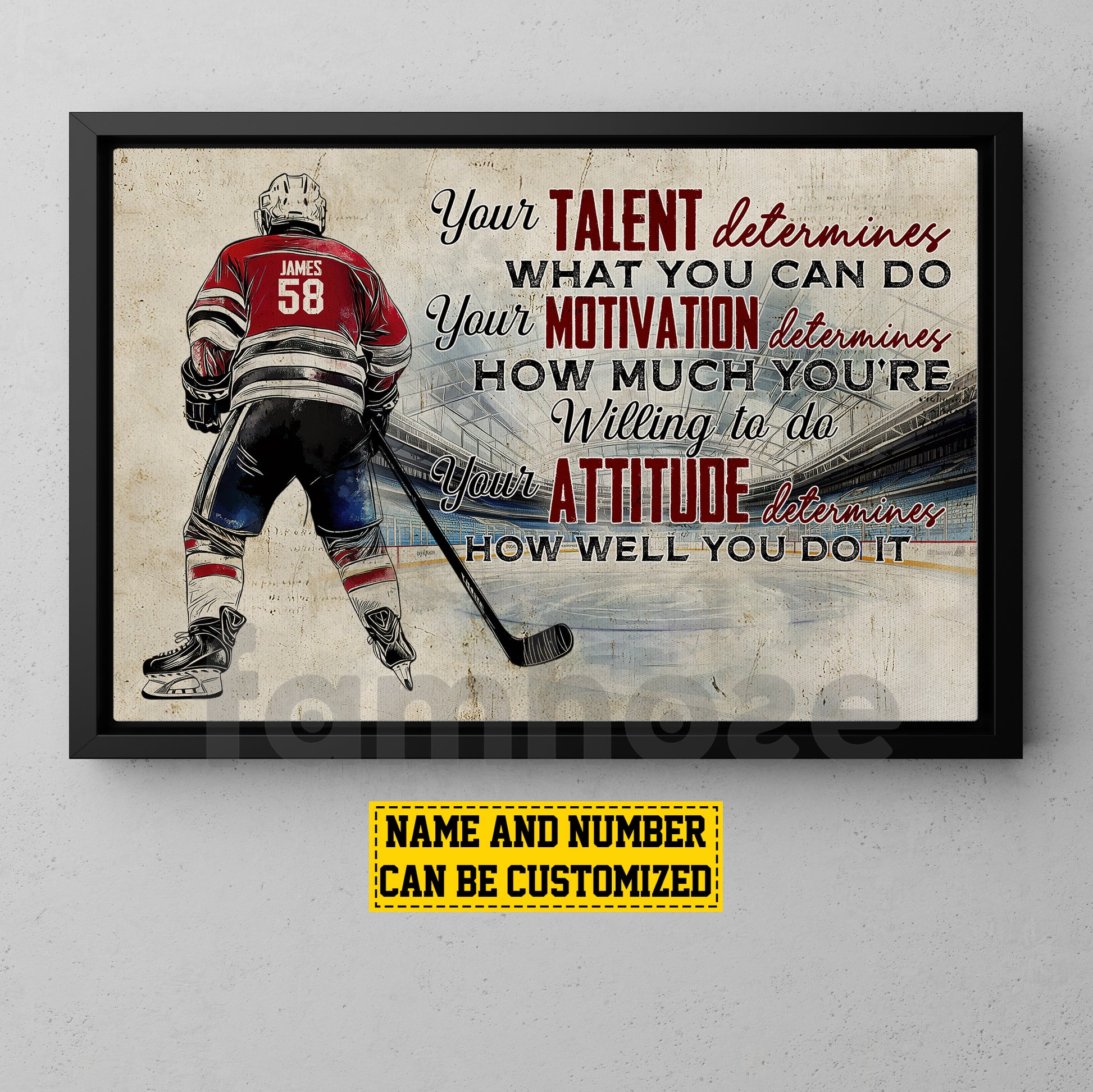 Motivational Personalized Hockey Man Canvas Painting, Your Talent Determines Sport Wall Art Decor, Poster Gift For Hockey Lovers