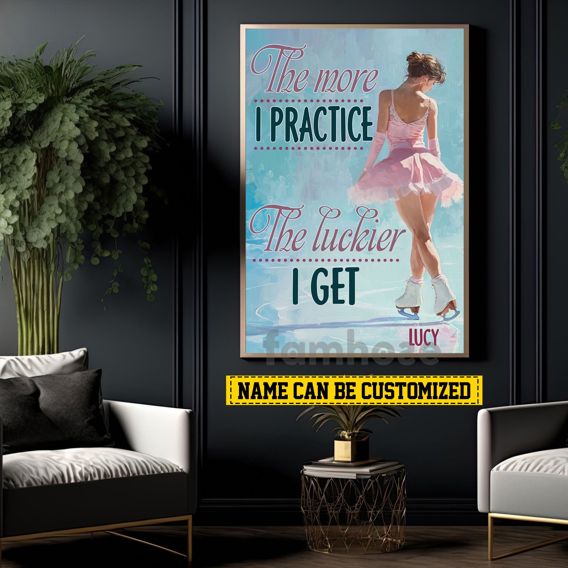 Motivational Personalized Ice Skating Woman Canvas Painting, The More I Practice Sport Wall Art Decor, Poster Gift For Ice Skating Lovers