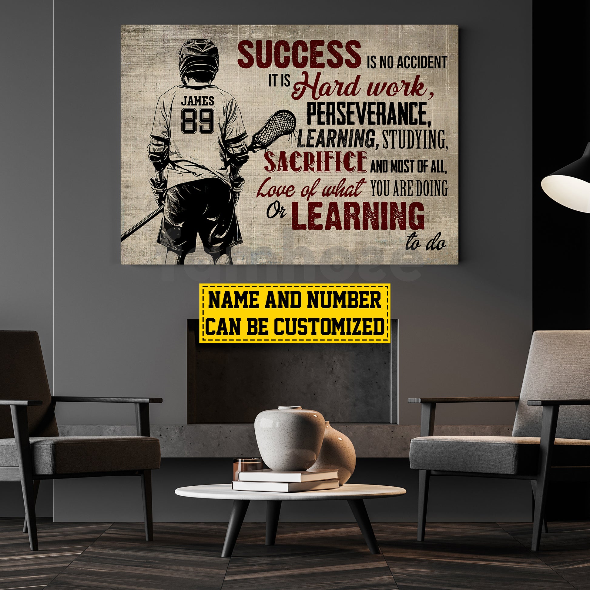 Motivational Personalized Lacrosse Canvas Painting, Success Is No Accident Sport Wall Art Decor, Poster Gift For Lacrosse Lovers