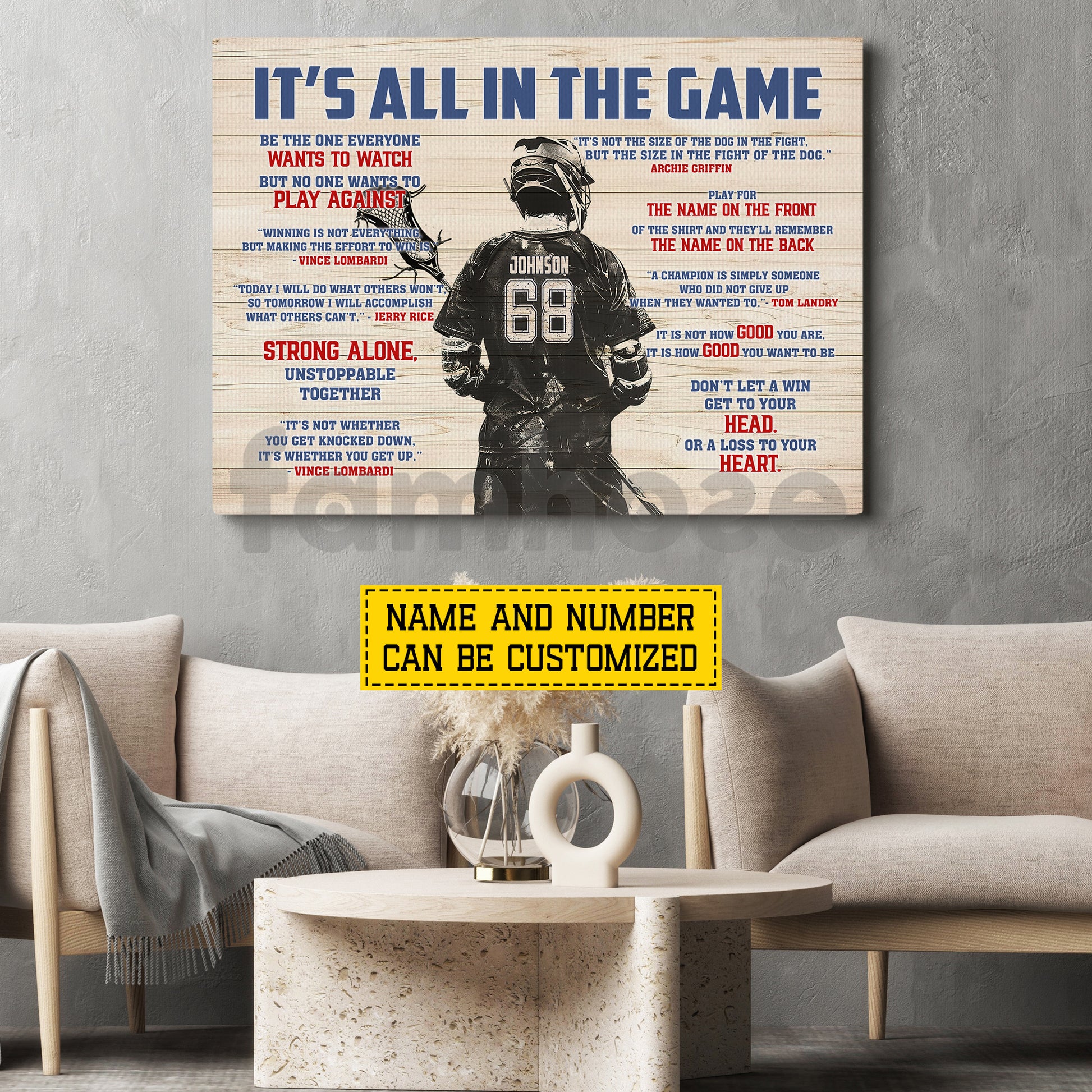 Motivational Personalized Lacrosse Man Canvas Painting, It's All In The Game Sport Wall Art Decor, Poster Gift For Lacrosse Lover