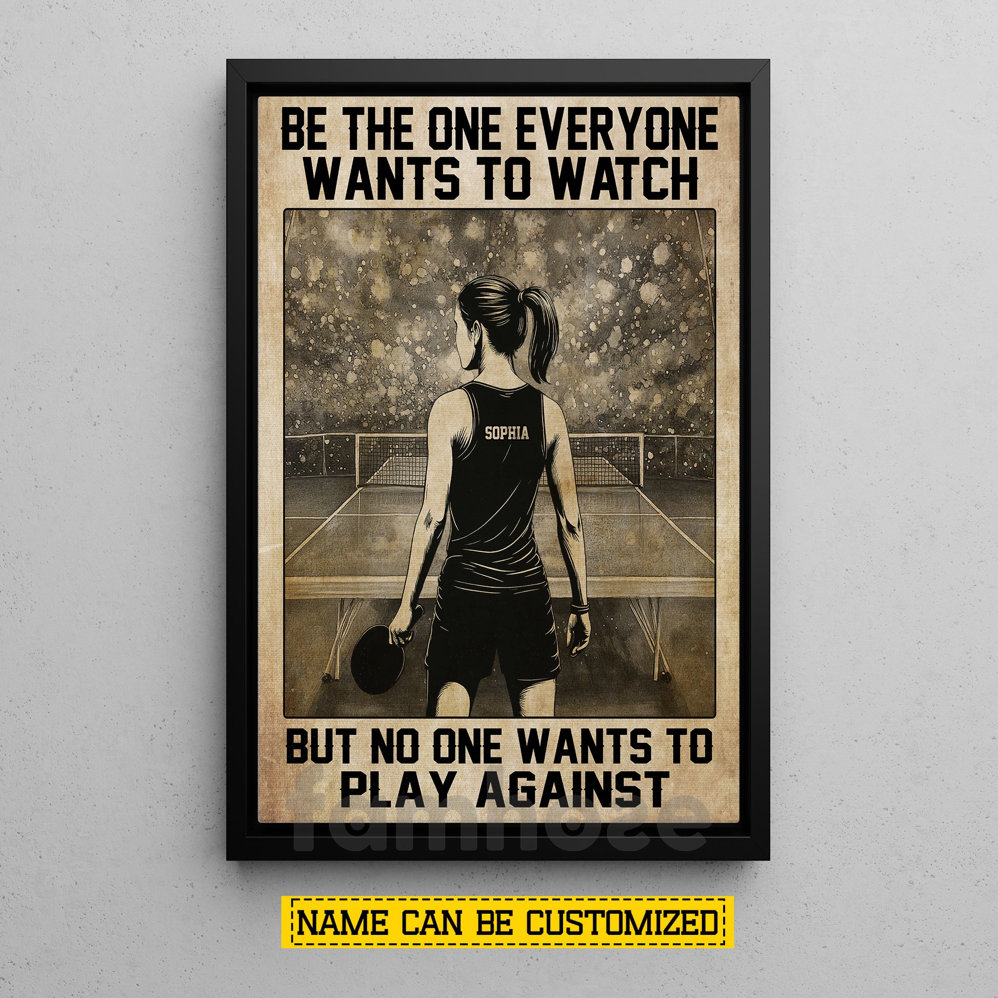 Motivational Personalized Ping Pong Woman Canvas Painting, Be The One Everyone Wants To Watch, Inspirational Quotes Wall Art Decor, Poster Gift For Table Tennis Lover