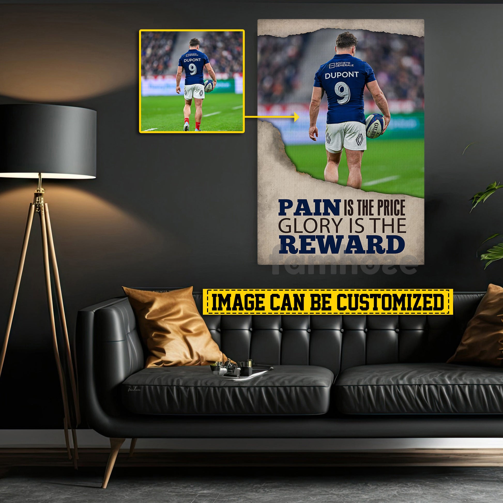 Motivational Personalized Rugby Man Canvas Painting, Pain Is The Price Sport Wall Art Decor, Poster Gift For Rugby Lovers