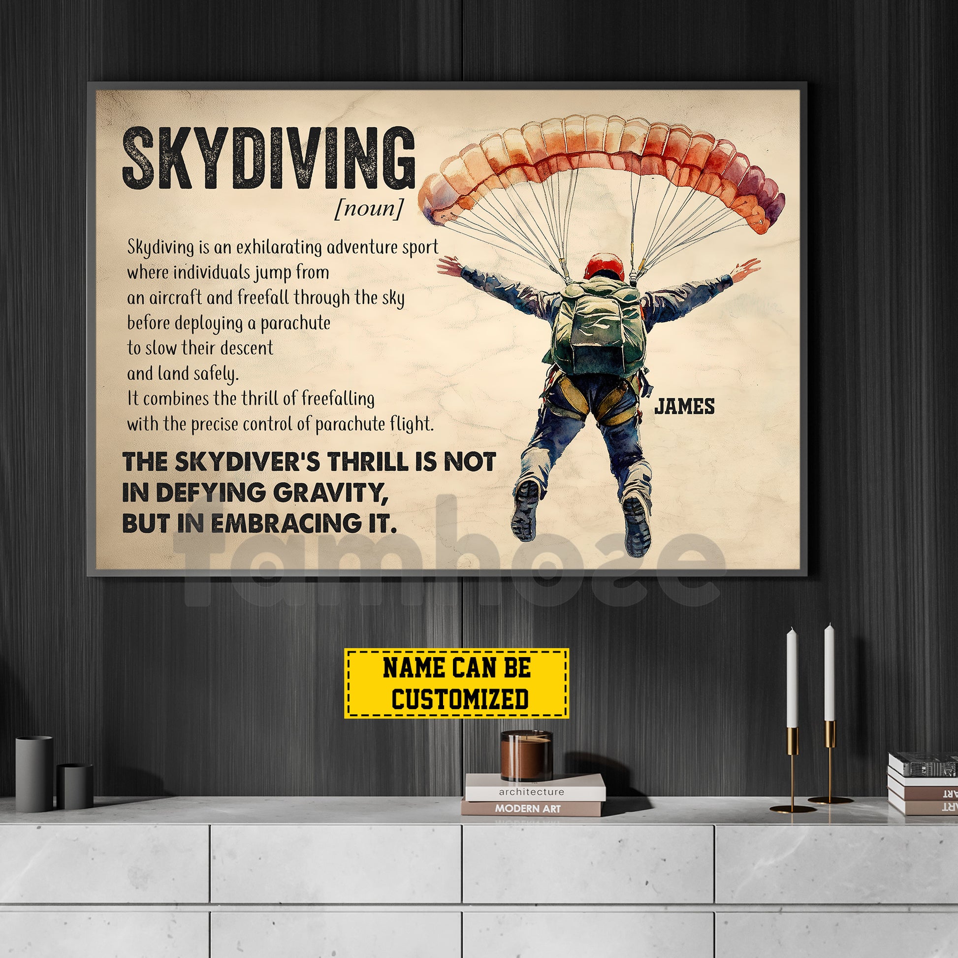 Motivational Personalized Skydiving Canvas Painting, Skydiving Is A Noun Sport Wall Art Decor, Poster Gift For Skydiving Lovers