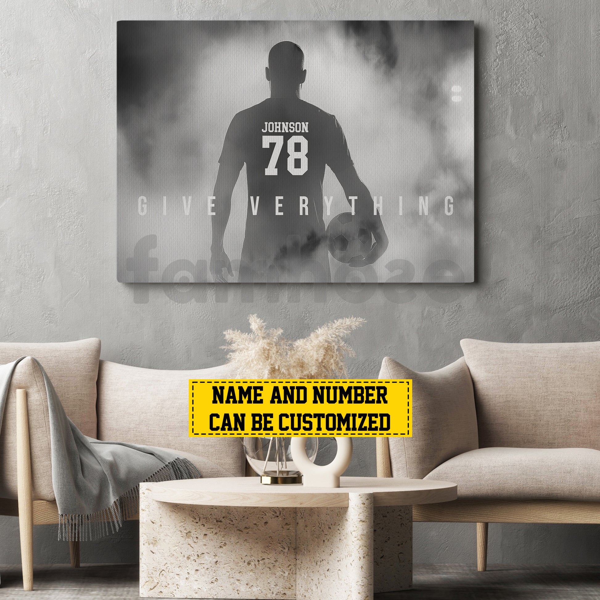 Motivational Personalized Soccer Man Canvas Painting, Give Everything Sports Quotes Wall Art Decor, Poster Gift For Soccer Lovers