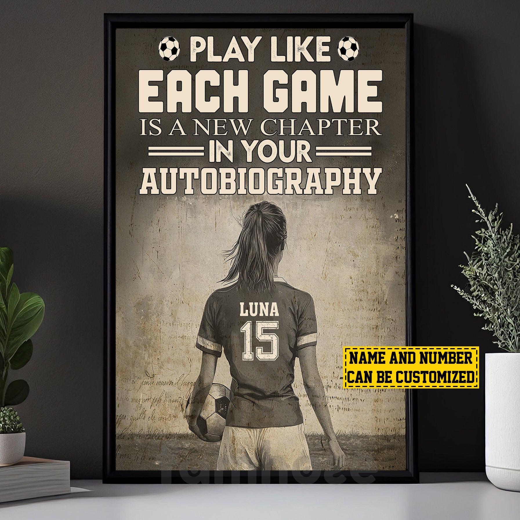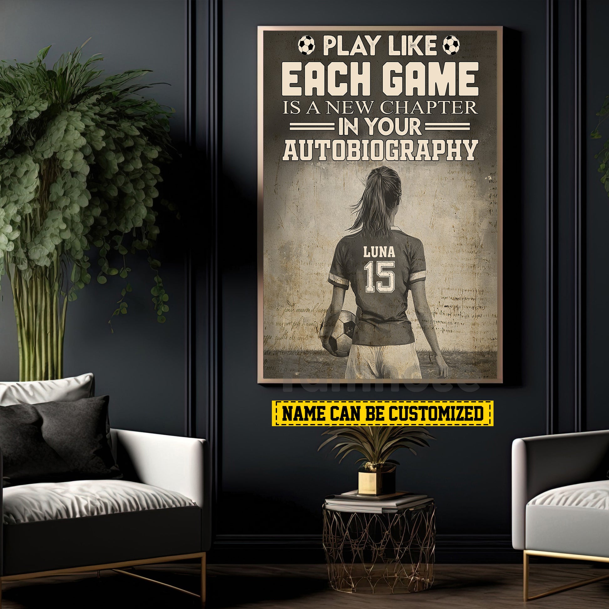 Motivational Personalized Soccer Woman Canvas Painting, Play Like Each Game Sport Wall Art Decor, Poster Gift For Soccer Lovers