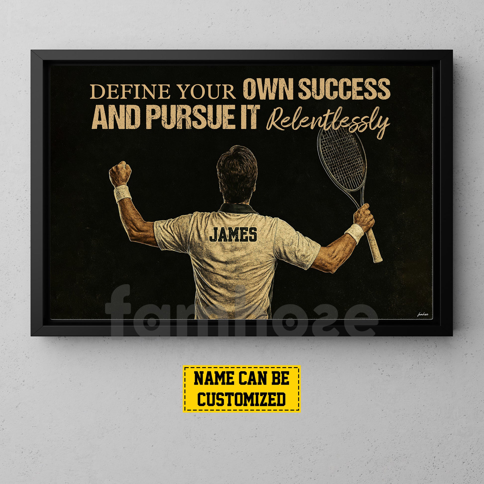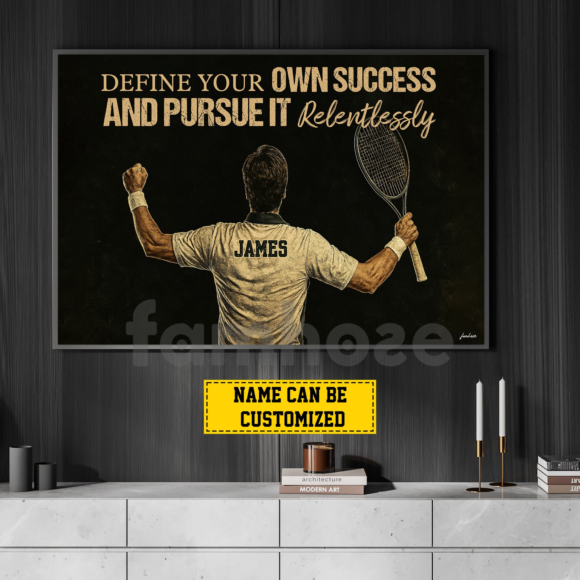 Motivational Personalized Tennis Man Canvas Painting, Define Your Own Success Sport Wall Art Decor, Poster Gift For Tennis Lovers