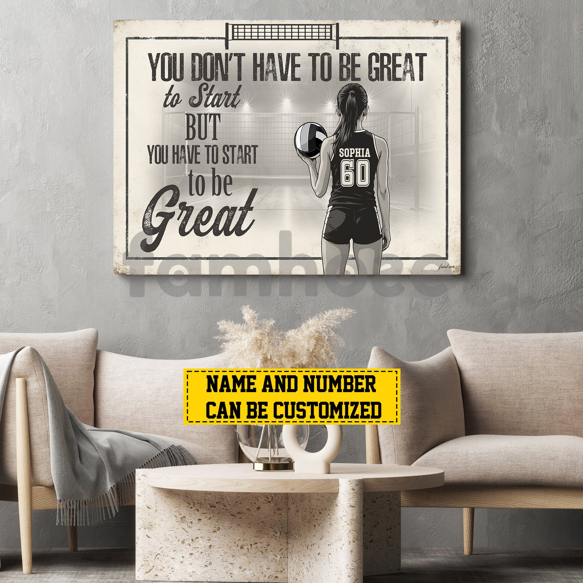 Motivational Personalized Volleyball Girl Canvas Painting, You Don't Have To Be Great Sport Wall Art Decor, Poster Gift For Volleyball Lovers