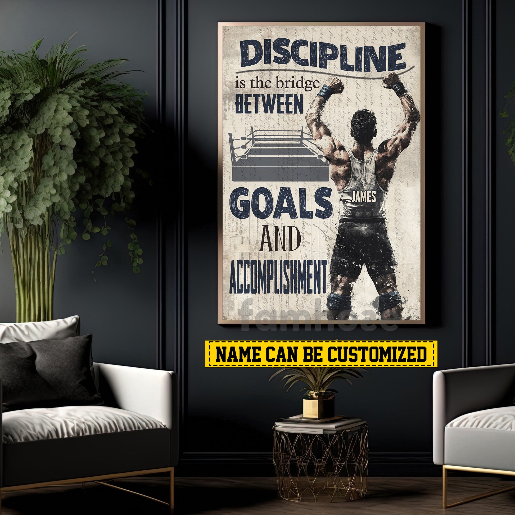 Motivational Personalized Wrestling Man Canvas Painting, Goals And Accomplishment Wall Art Decor, Poster Gift For Wrestler