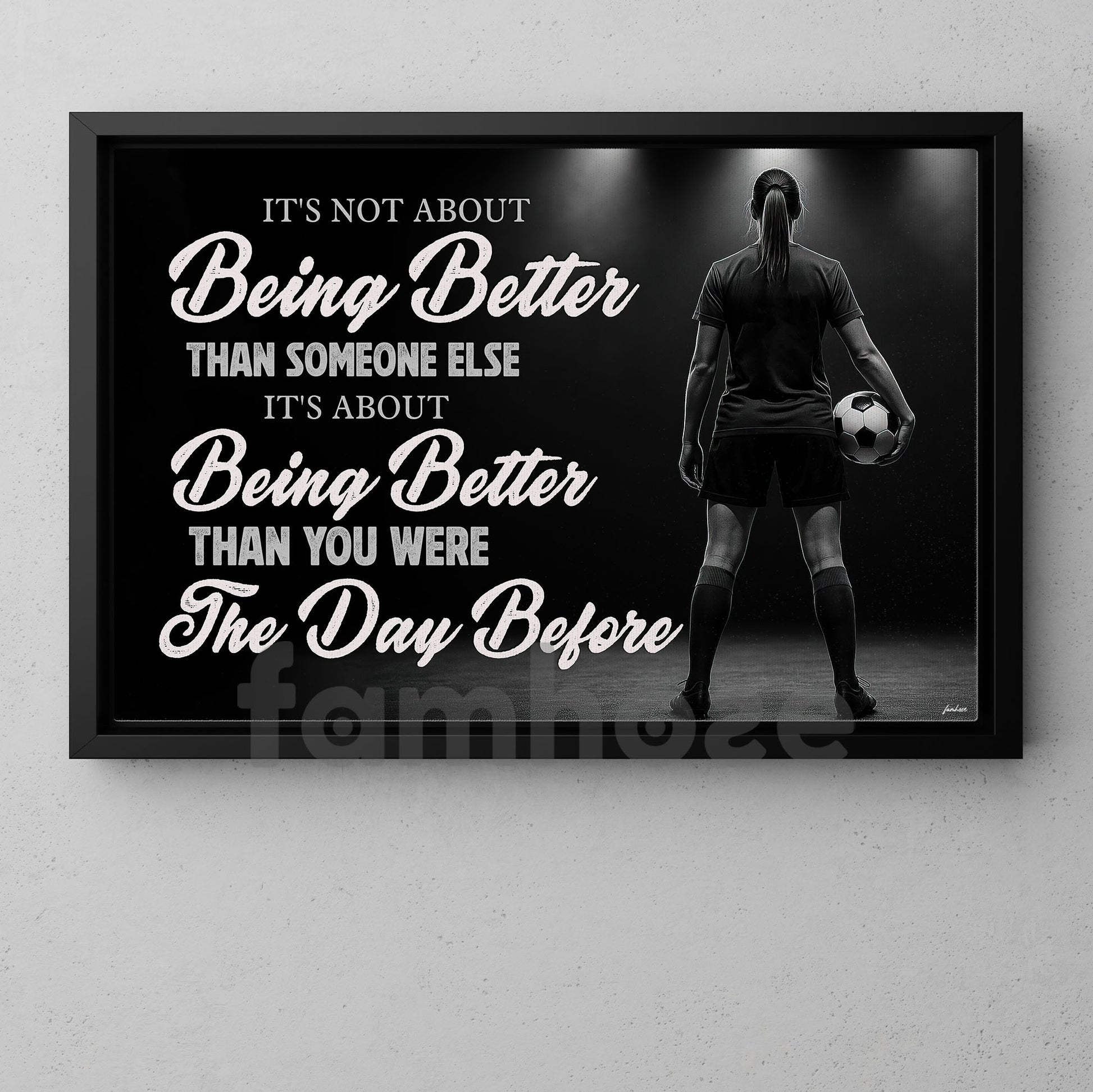 Motivational Soccer Girl Canvas Painting, It's About Being Better Wall Art Decor, Poster Gift For Soccer Lovers