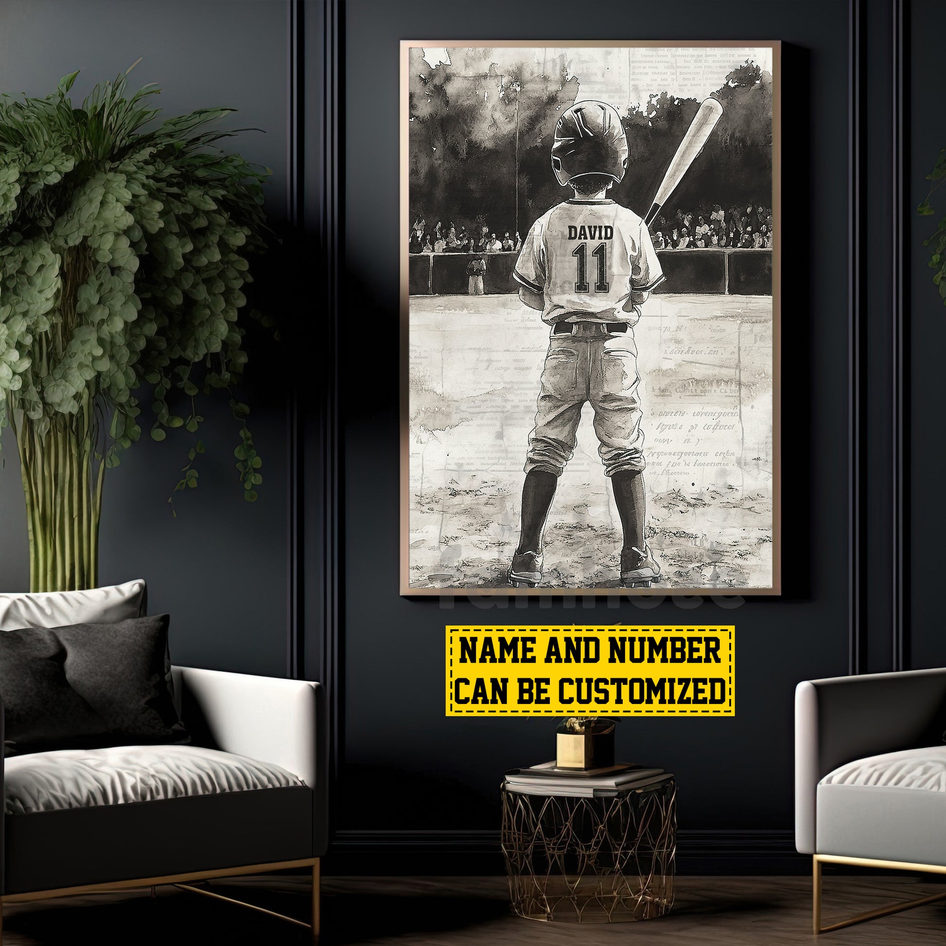Personalized Baesball Kid Boy Canvas Painting, Dream Big, Play Ball Sport Wall Art Decor, Poster Gift For Baseball Lovers