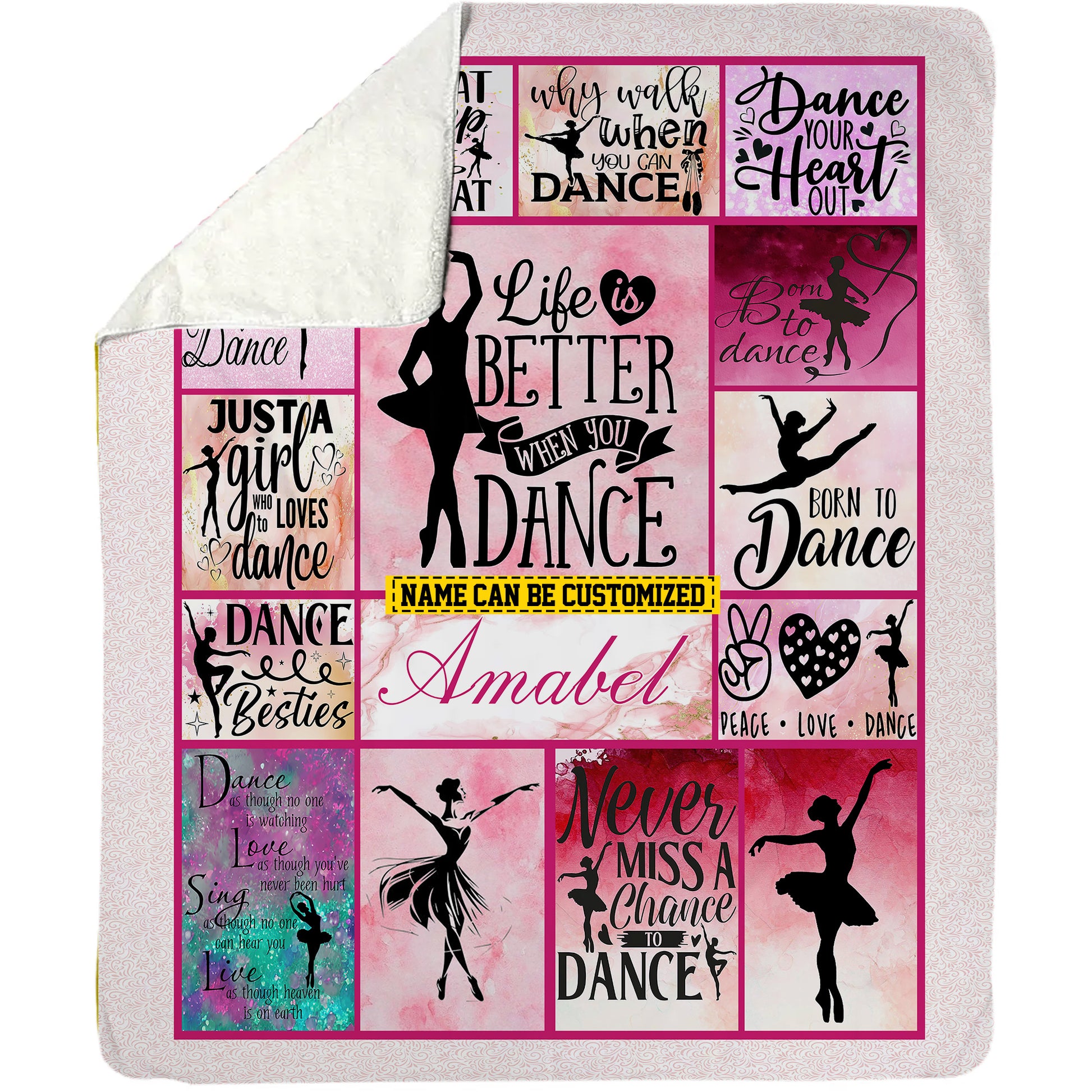 Personalized Ballet Girl Fleece Blanket, Born To Dance Woven Blanket, Cool Sherpa Blanket Gift For Ballet Lovers