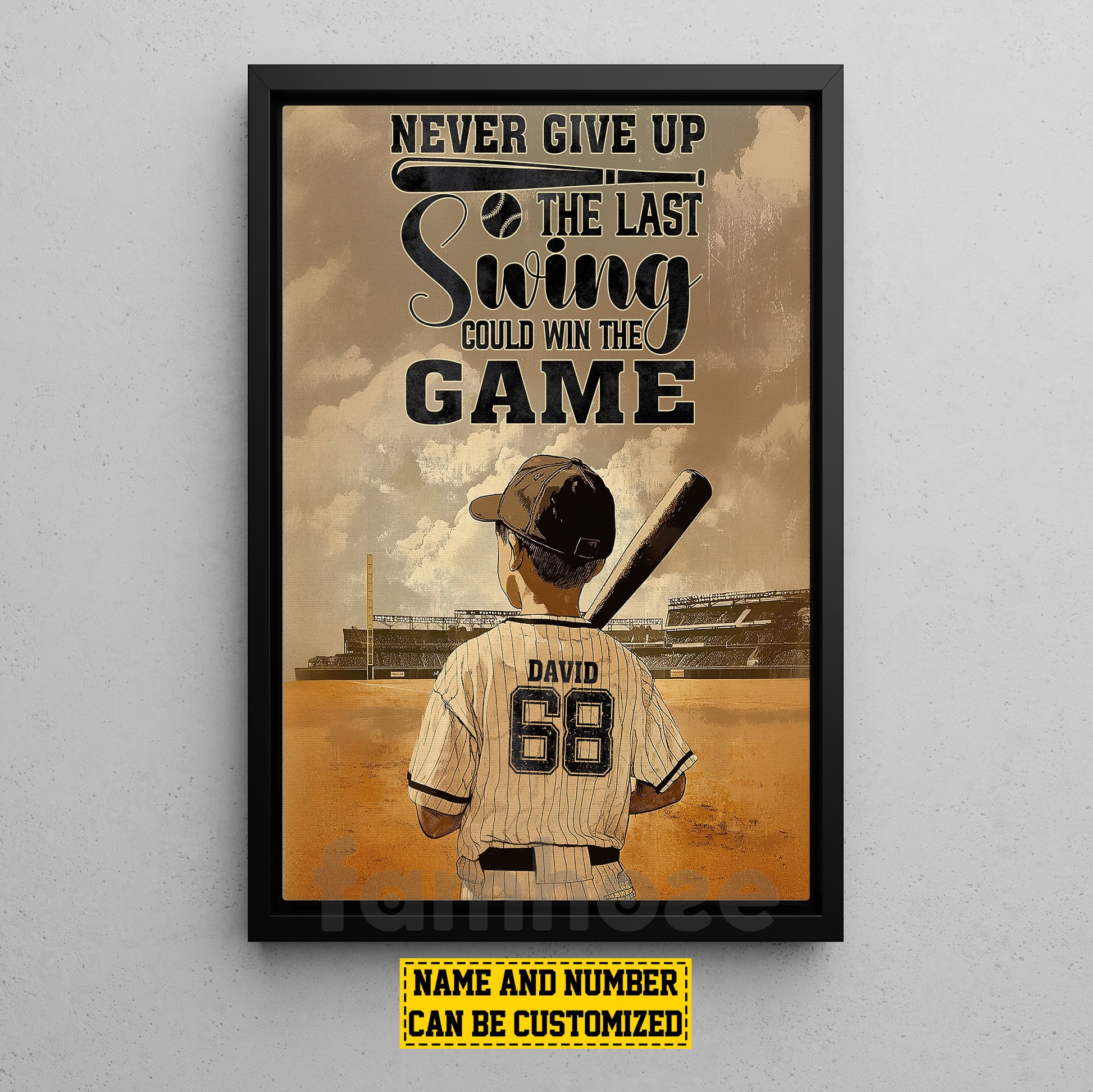 Personalized Baseball Boy Canvas Painting, Never Give Up Sports Wall Art Decor, Poster Gift For Baseball Lovers