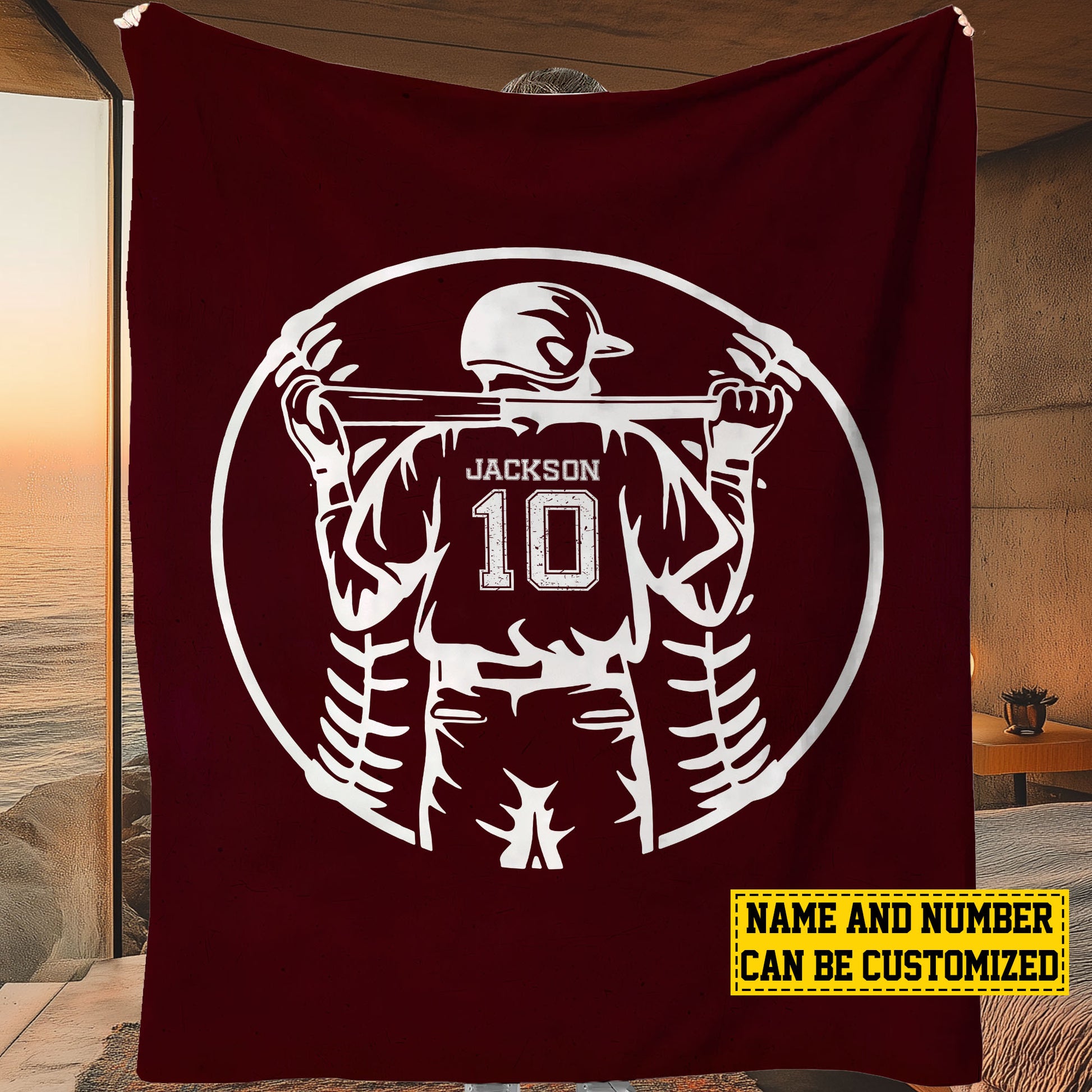 Personalized Baseball Boy Fleece Blanket, Baseball Woven Blanket, Cool Sherpa Blanket Gift For Baseball Lovers, Baseball Players