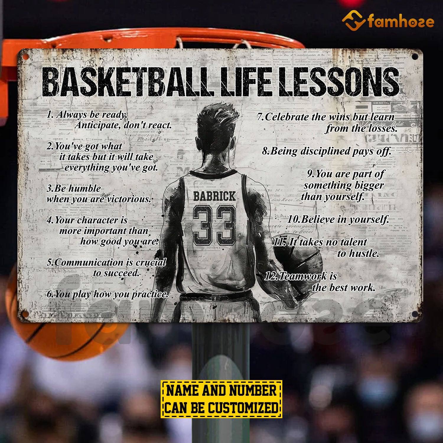 Personalized Basketball Boy Metal Sign, Inspirational Basketball Life Lessons Sports Sign, Field Decor Gift For Basketball Lovers