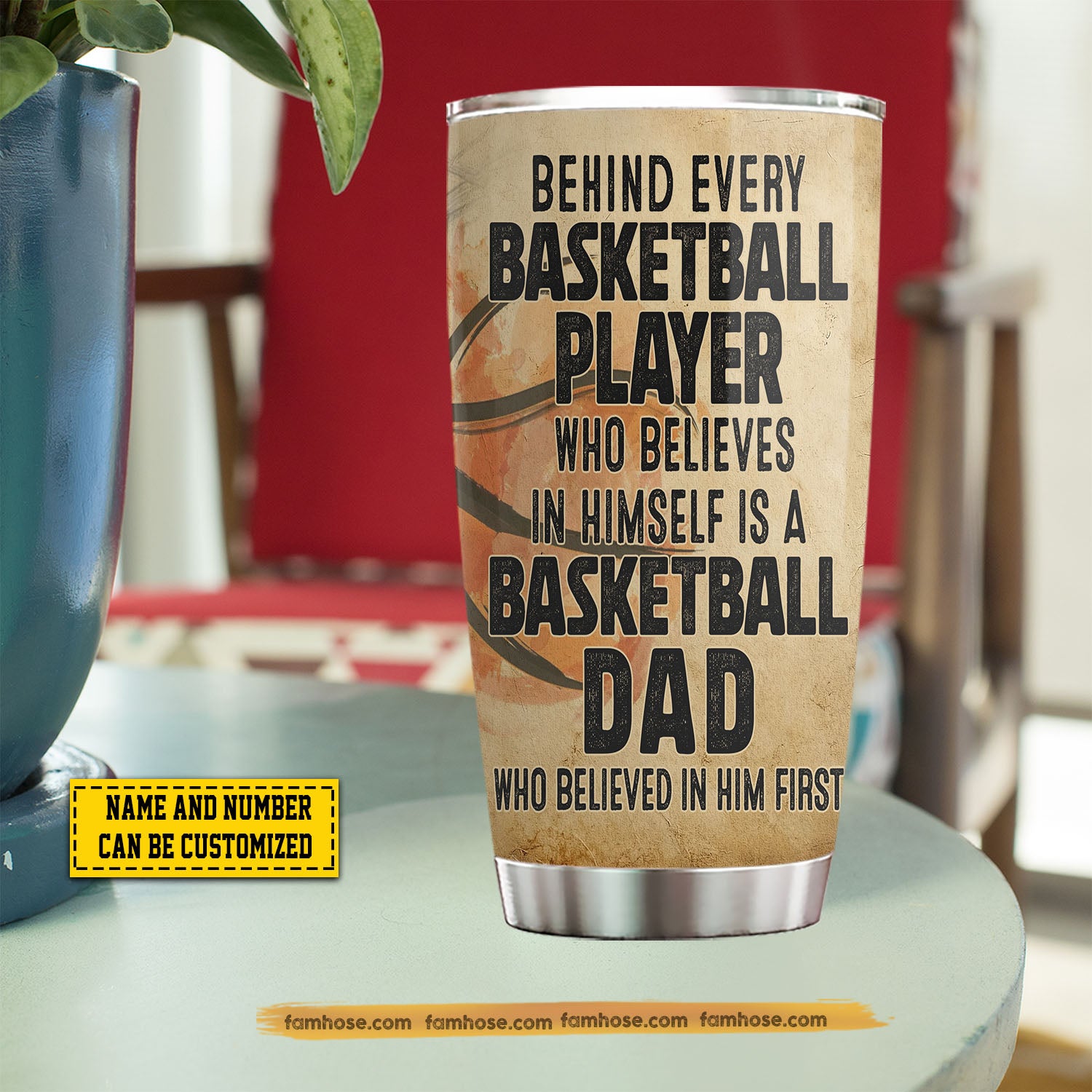 Personalized Basketball Dad Son Tumbler, Behind Every Basketball Player Stainless Steel Tumbler, Father's Day Gift For Basketball Lovers