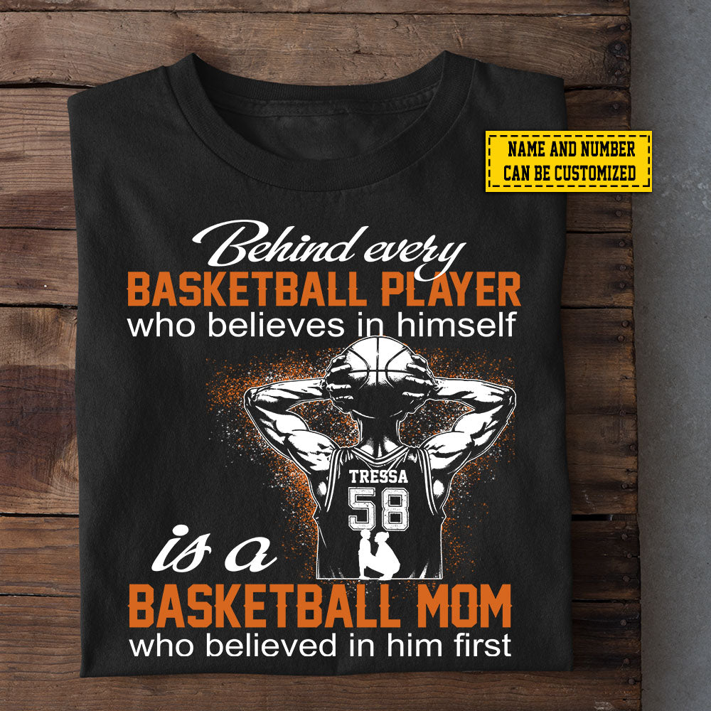 Personalized Basketball T-shirt, Behind Every Basketball Player Is A Mom, Mother's Day Gift For Basketball Lovers, Basketball Players