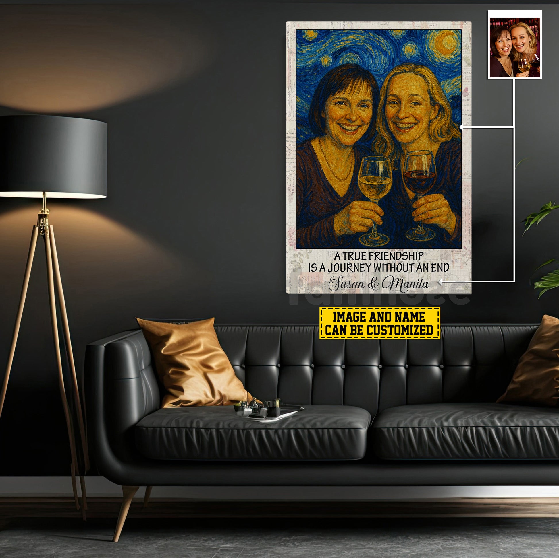 Personalized Bestfriend Canvas Painting, A True Friendship Van Gogh Style Wall Art Decor, Poster Gift For Bestfiend