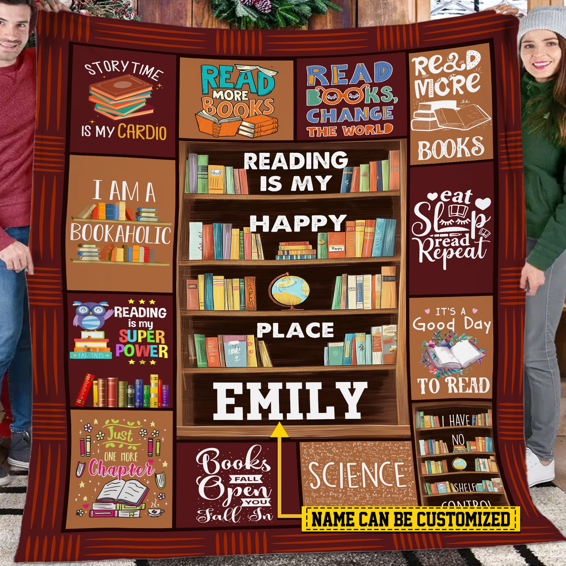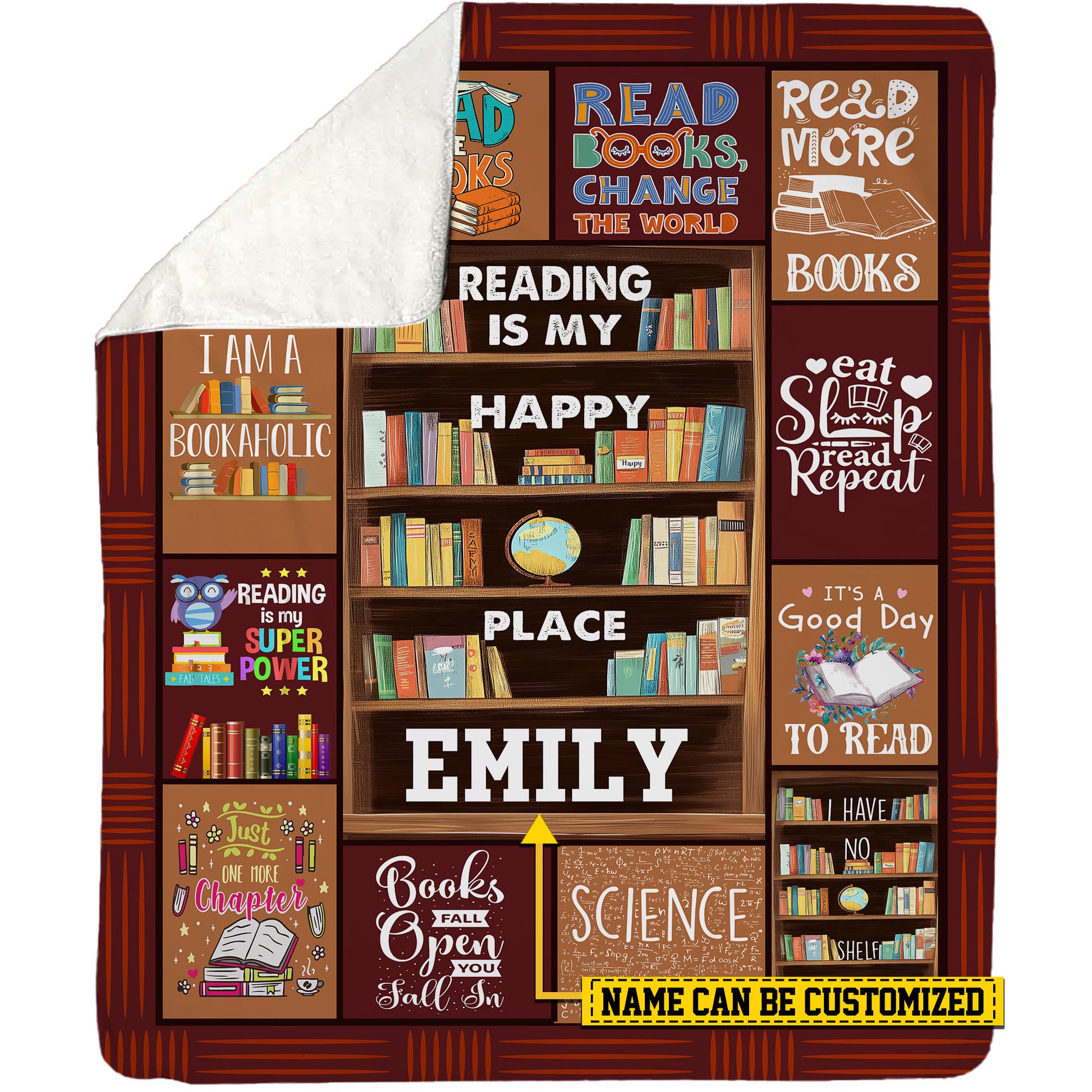 Personalized Books Fleece Blanket, Reading Is My Happy Places Woven Blanket, Cool Sherpa Blanket Gift For Books Lovers