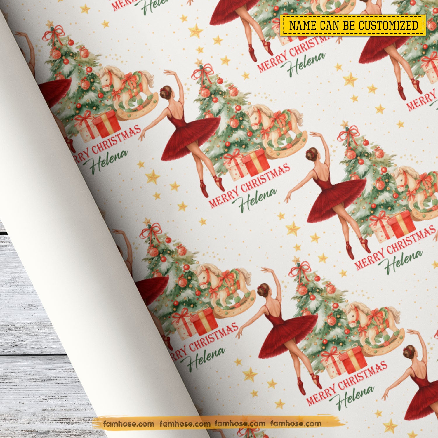 Personalized Christmas Ballet Wrapping Paper, Ballerina Dance In White Background Wrapping Paper Rolls, Xmas Gift Wrap For Ballet Lover