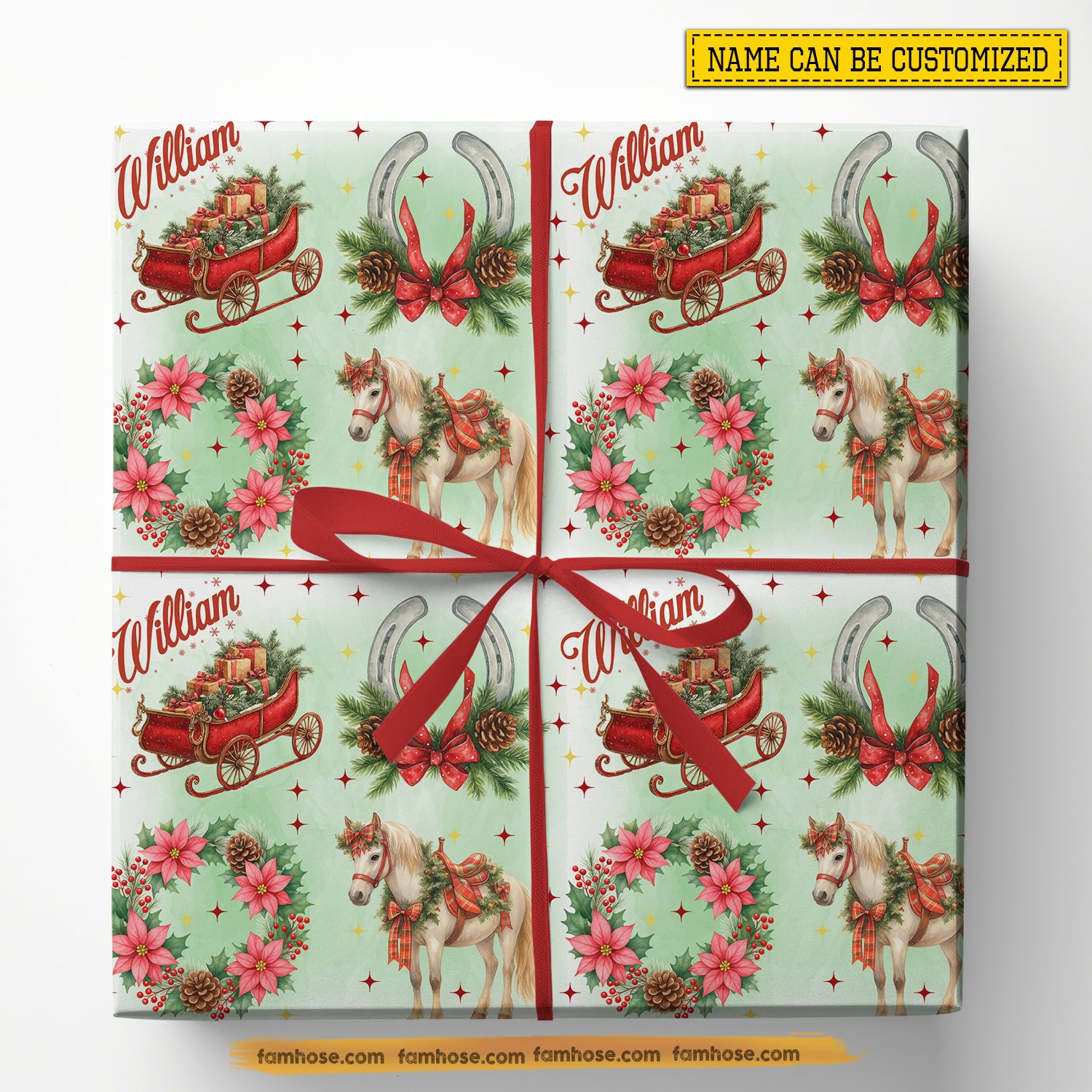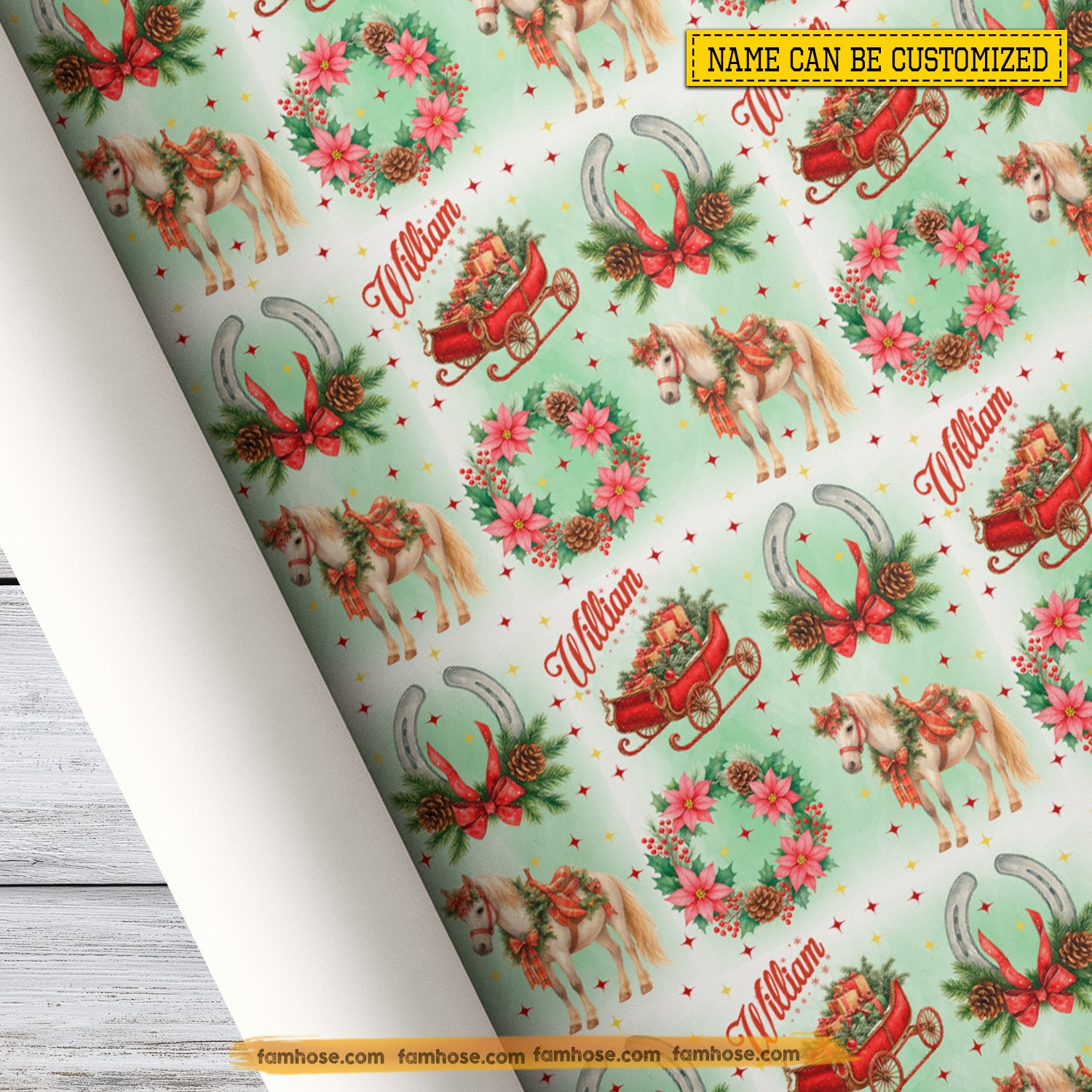 Personalized Christmas Horse Wrapping Paper, Festive Horse & Sleigh Wonderland Wrapping Paper Rolls, Xmas Gift For Horse Lover